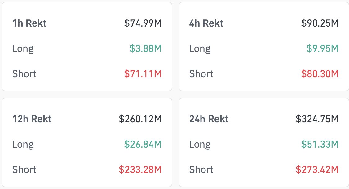 Bitcoin突破69,000美元,Ethereum突破2,100美元,继续上涨趋势。这一走势导致过去4小时内6,500万美元的空头头寸被清算。