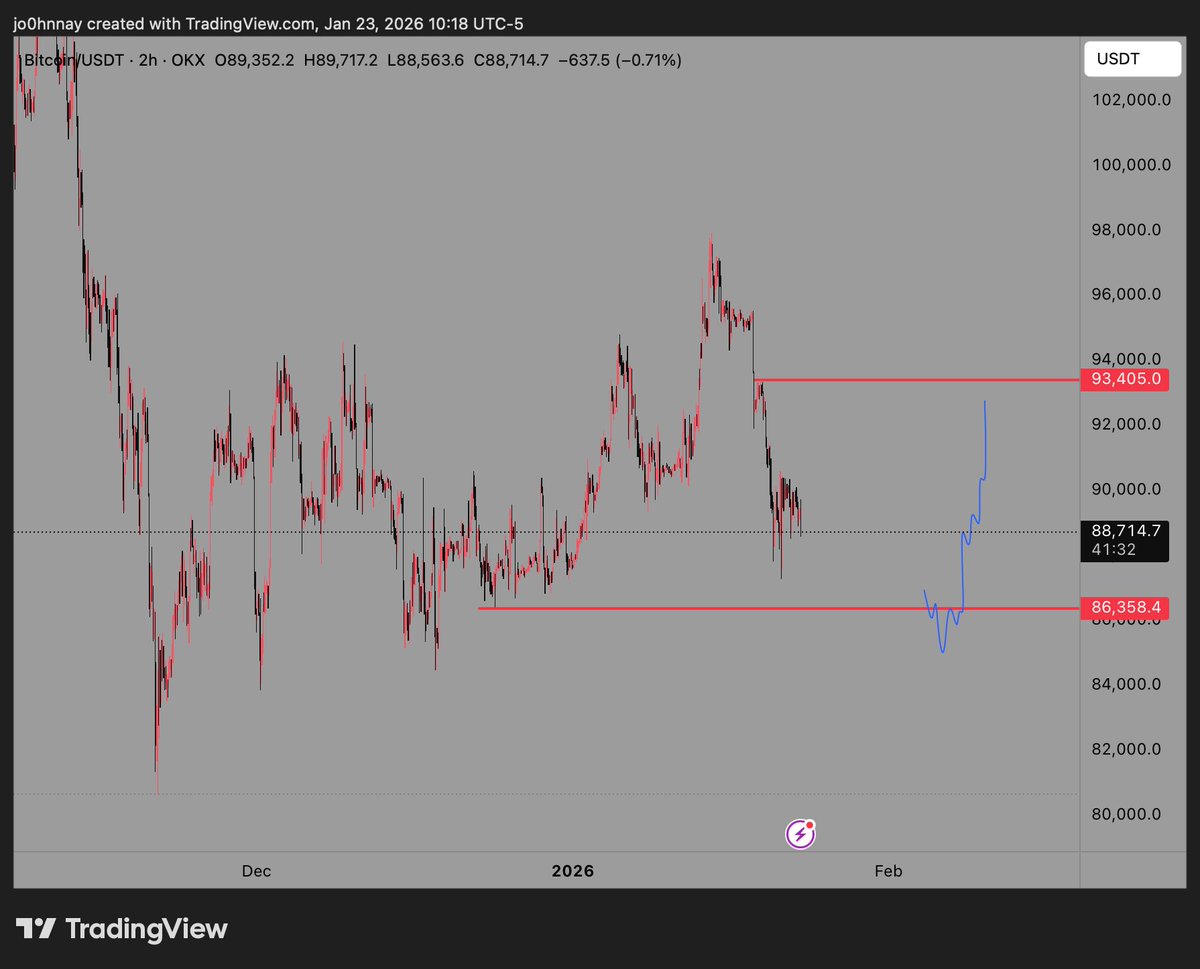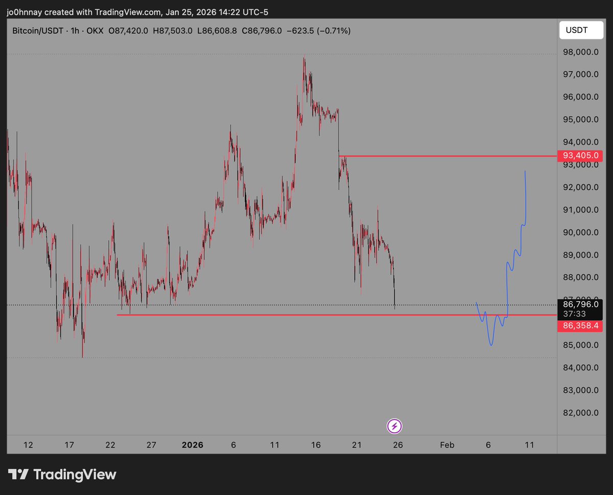 如果我们在$BTC上看到这样的走势,我会寻找新的多头机会