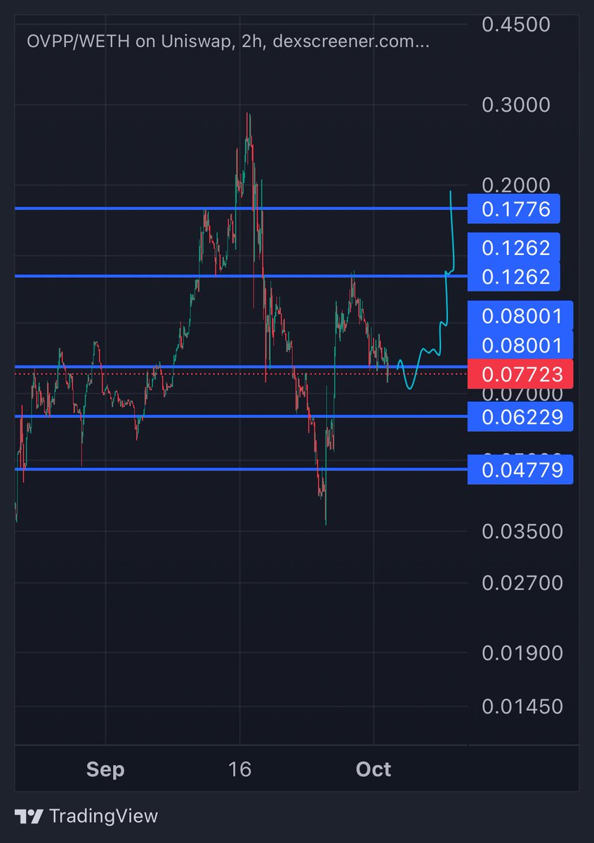 $OVPP 在从低点上涨3.5倍后,现在正在小幅回调并进入支撑区域。预计多头将介入,这将是下一个阶段上涨至$0.175和新ATH前的局部底部。