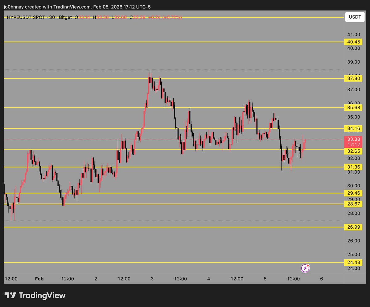 比特币下跌近25k,而Hype在30美元区间轻松盘整。当市场触底时,HL将会是个大赢家。
