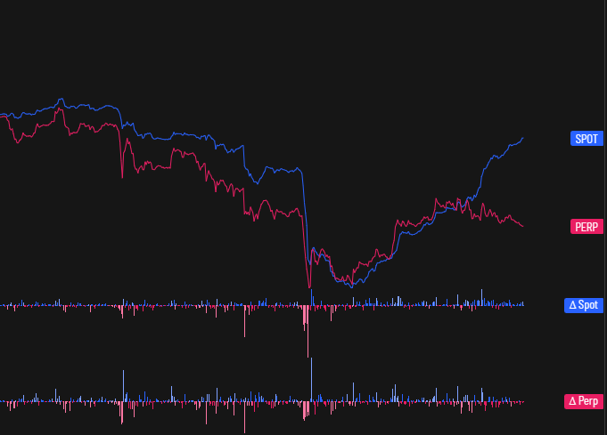 一个积极的信号是,我们在一段时间内首次看到现货CVD's上涨,而永续合约下跌