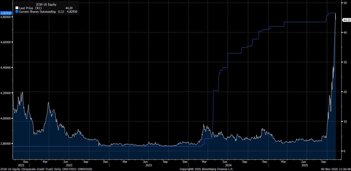 Grayscale Zcash Trust—传统金融(TradFi)中唯一公开交易的Zcash产品—自9月30日以来仅流入40万美元