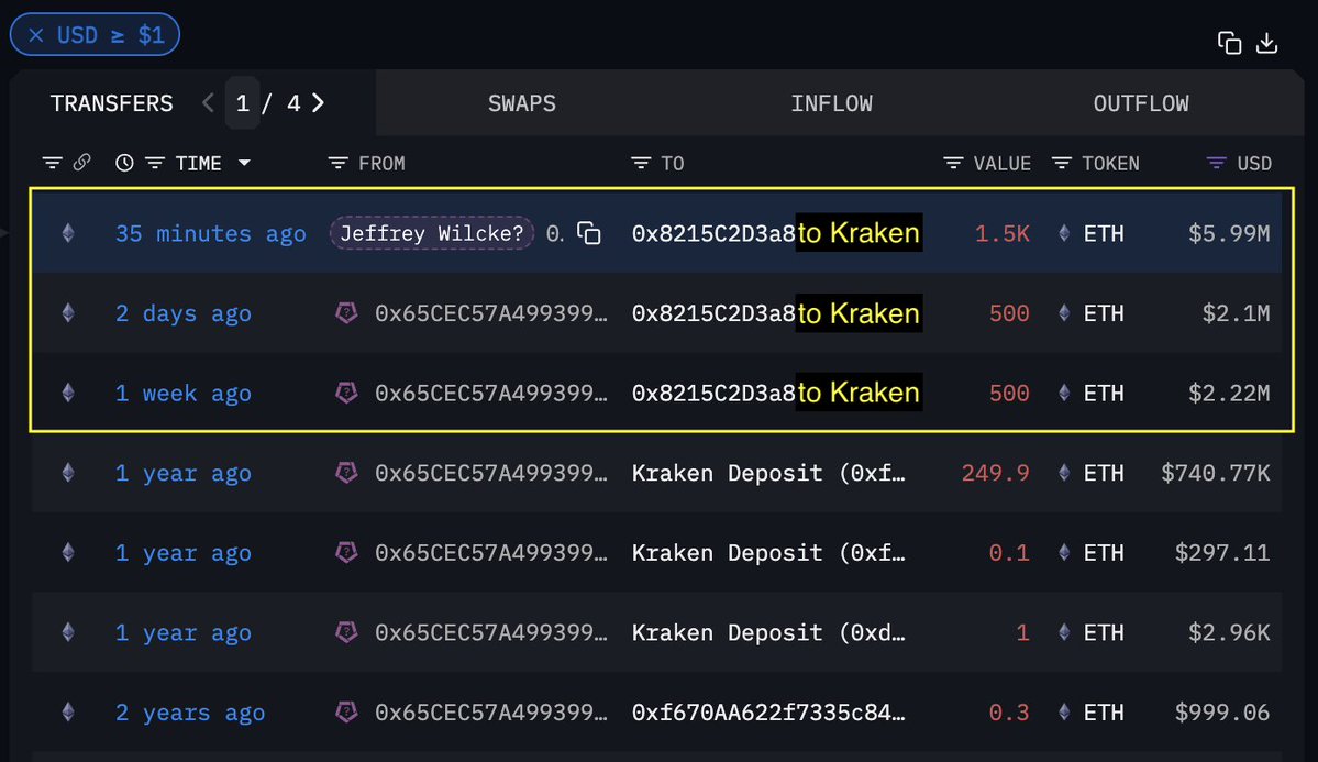 1️⃣ 新鲸鱼“0x9d2”约4小时前从#Kraken提取了21,925 $ETH(1.02亿美元)。