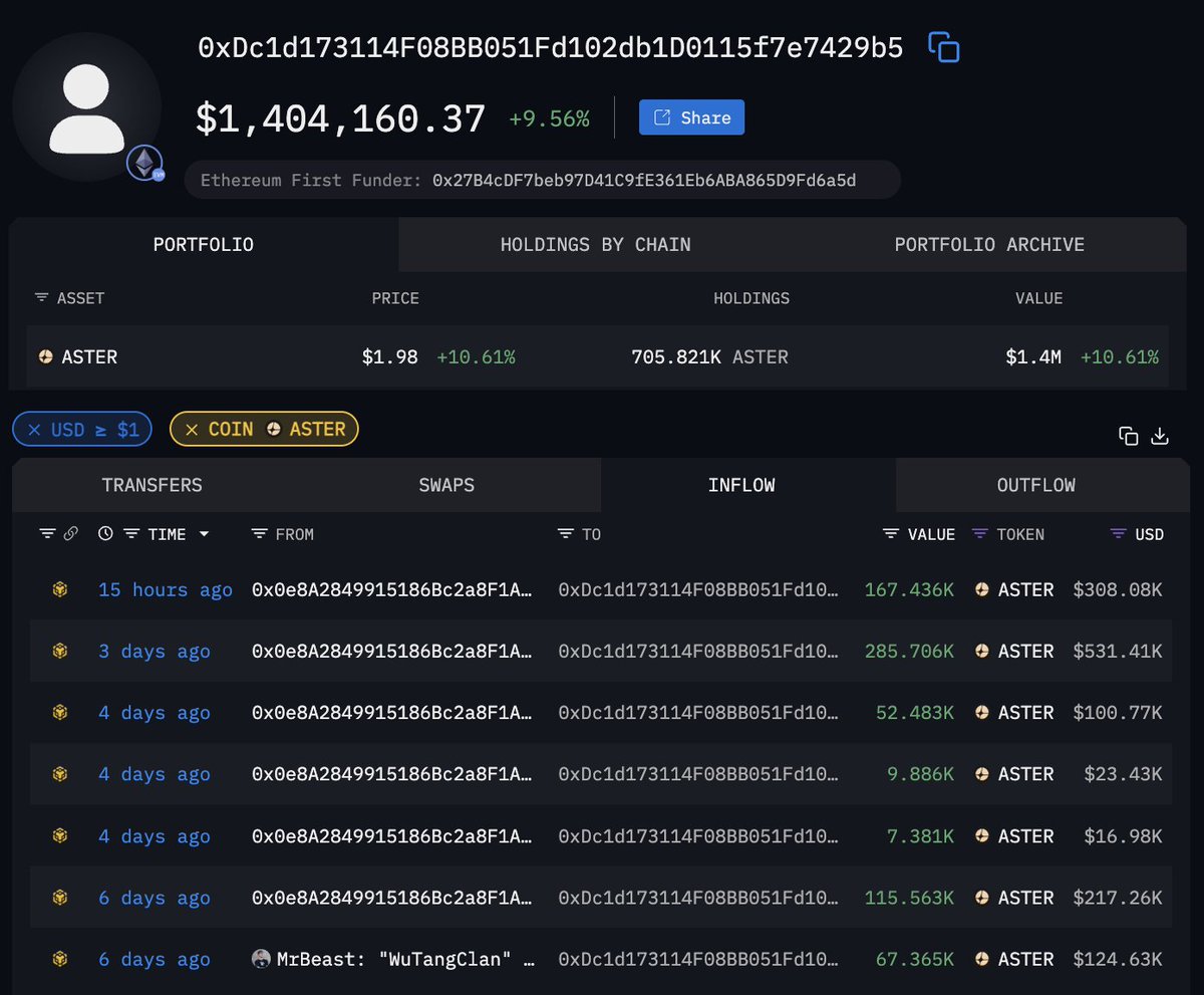 该鲸鱼还斥资221万美元以单价1.02美元买入216万枚#FARTCOIN。