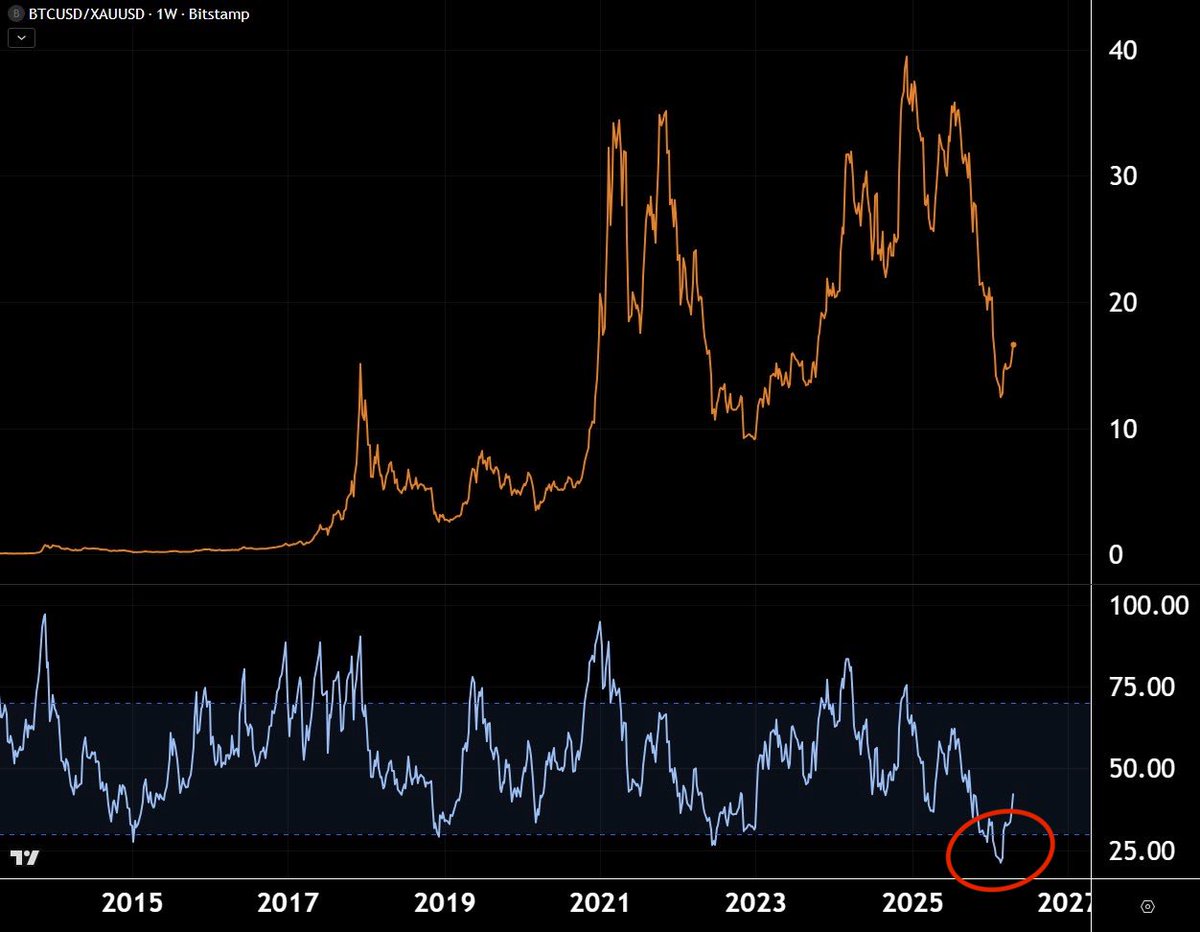 你有机会以比特币相对于黄金有史以来最超卖的水平买入