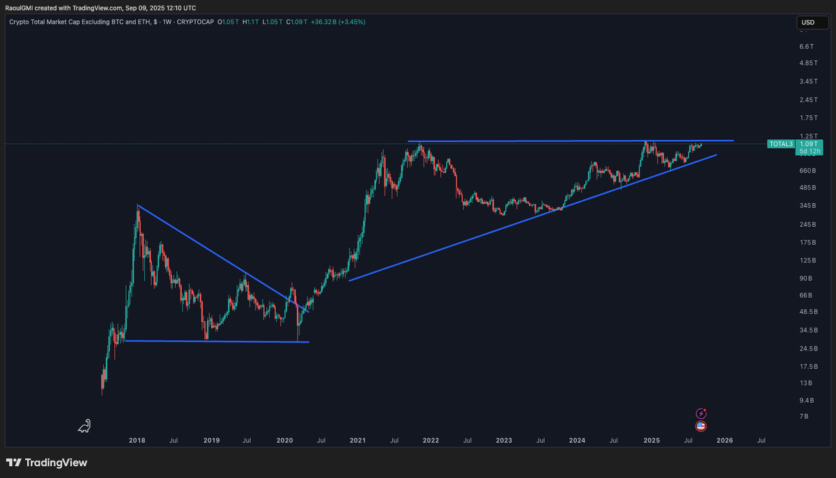 你无法不盯着这张图表看... 总市值不包括 BTC 和 ETH。