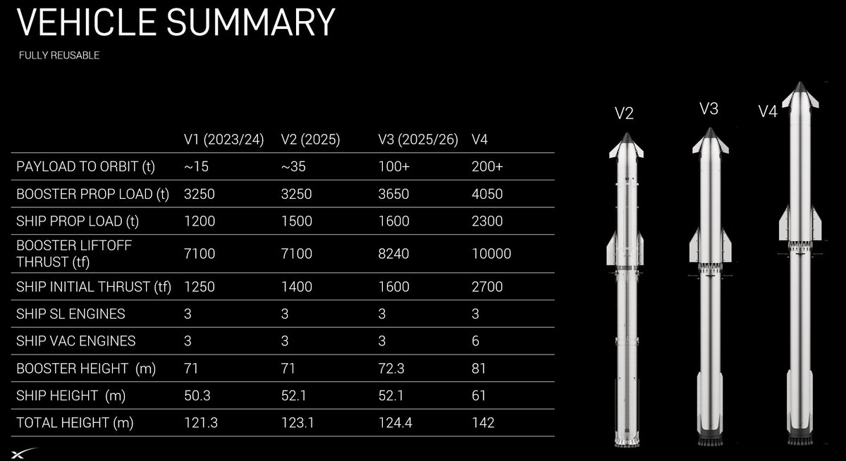 V4计划在2027年。高度可能接近150米,重量达到7500吨。