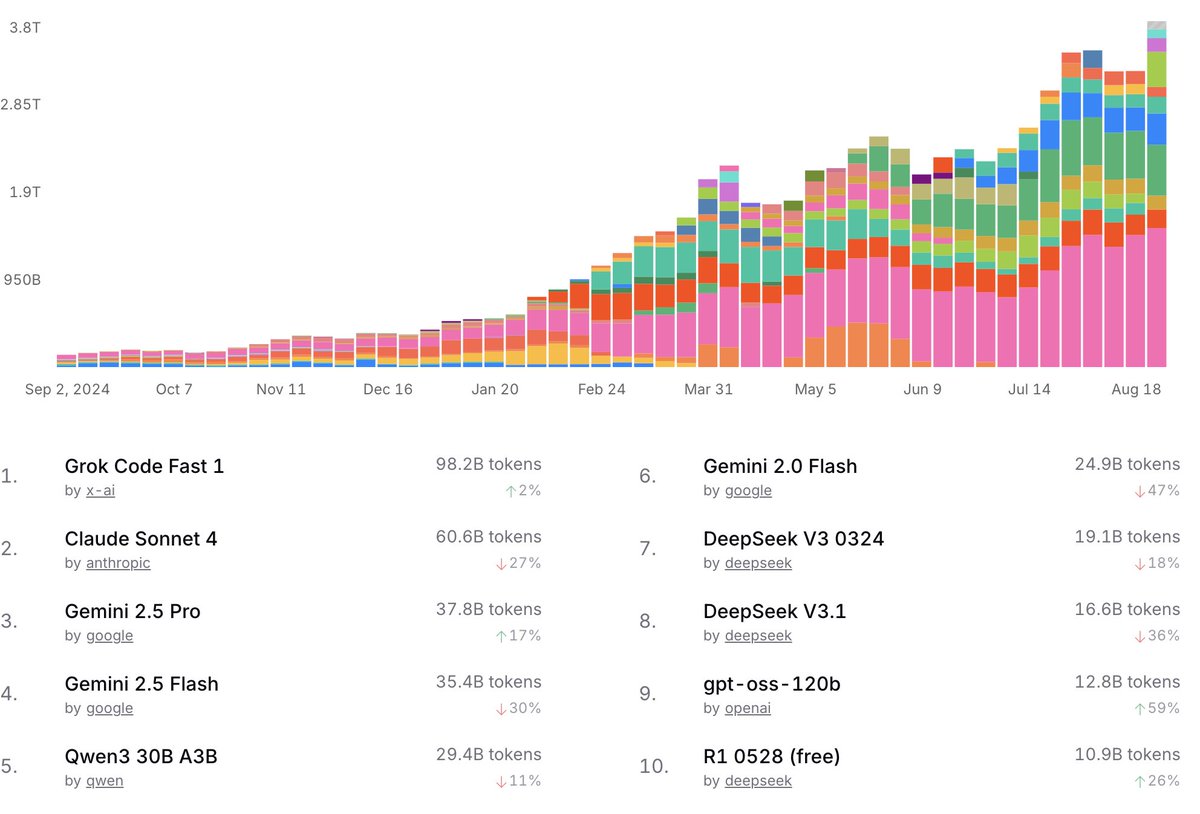 Grok Code 使用量比 Claude Sonnet 高出60%
