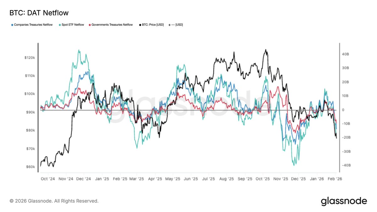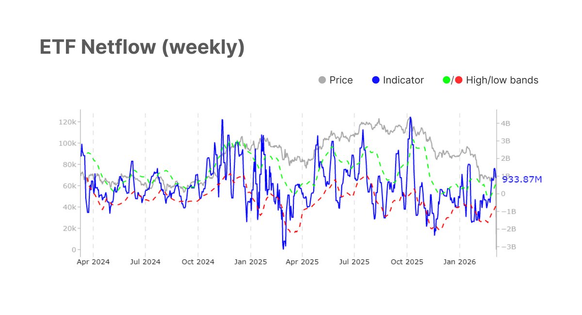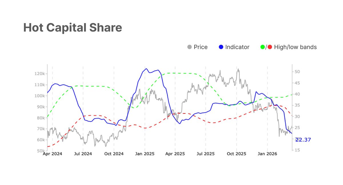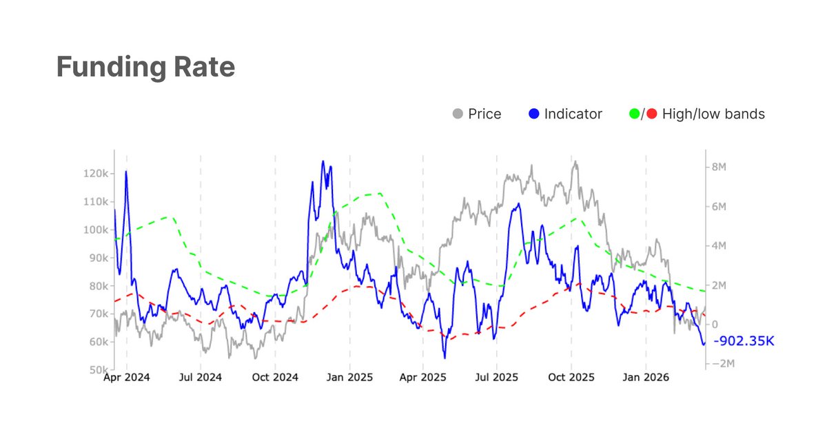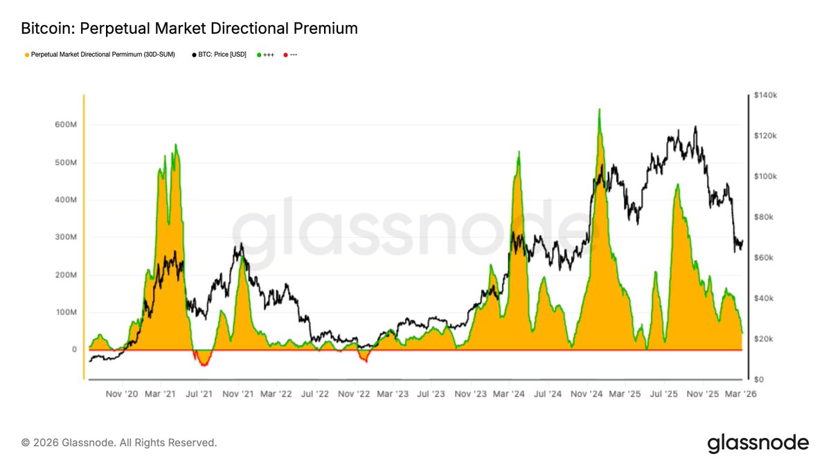 每当净实现盈亏的12小时简单移动平均值飙升至每小时$5M以上时,价格就会在$69.4k的高点区域停滞并反转。这个区域继续压制每一次复苏尝试。这种不对称性反映了当前需求结构的脆弱性。