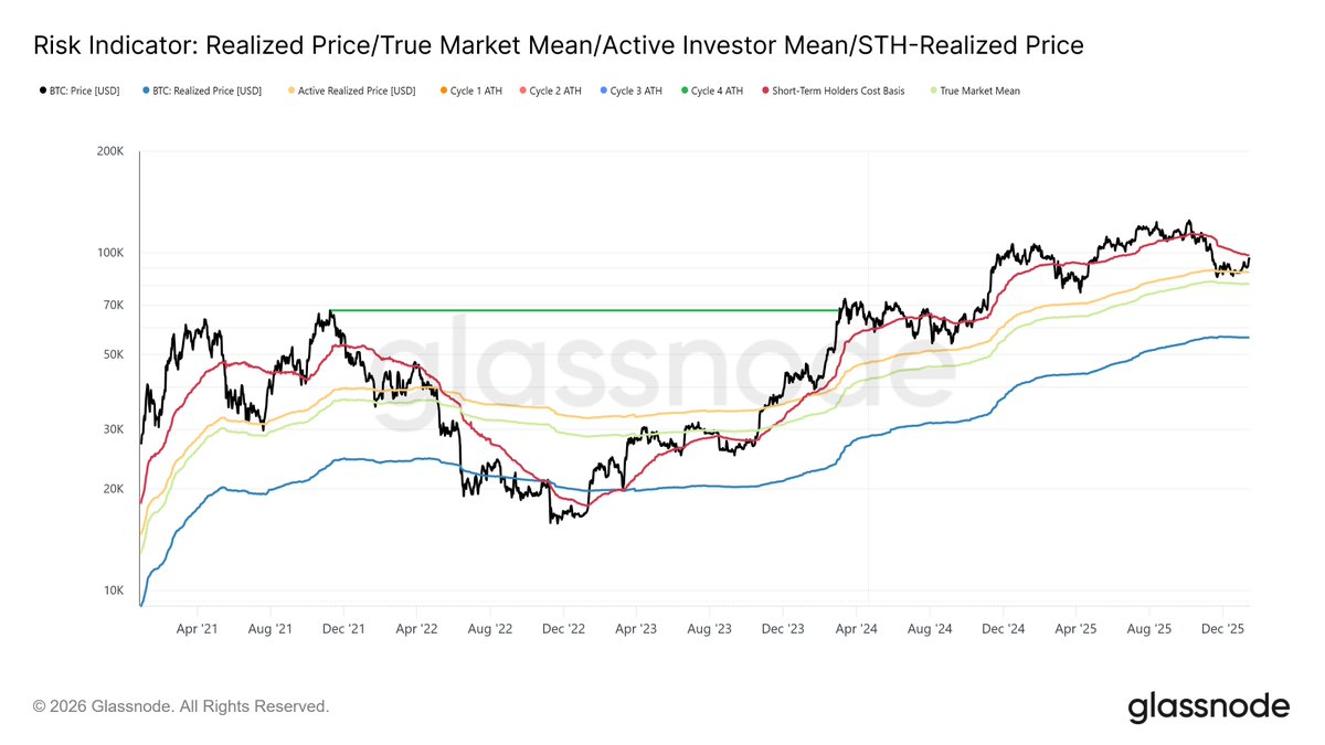 "根据 Glassnode 的数据,这个 $98k 水平也很重要,因为短期持有者(STH)的成本基础(近期投资者的平均入场价格)为 $98.3k。正如 Glassnode 指出的那样,‘历史上,重新站稳并保持在短期持有者成本基础之上,标志着从调整阶段过渡到更持久的上升趋势’"