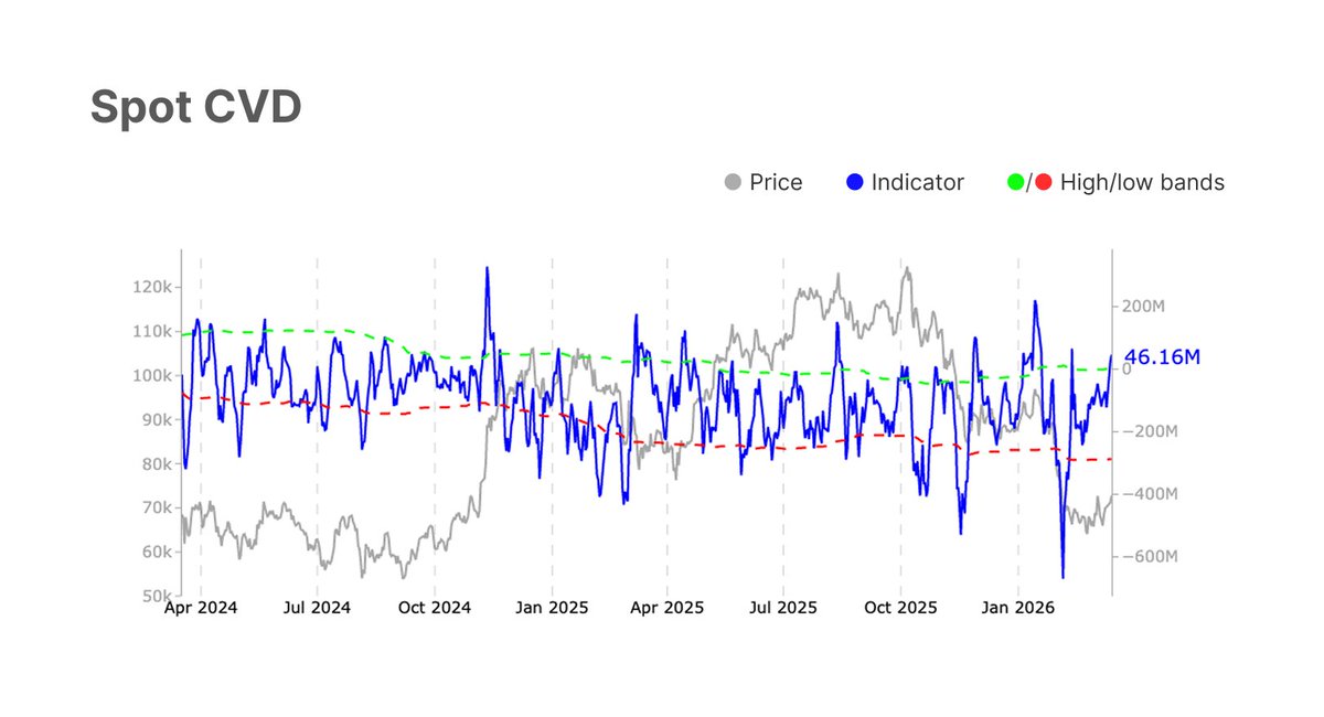 现货CVD正在恢复,ETF流入正在反弹,永续资金仍然为负——空头回补在此发挥作用。