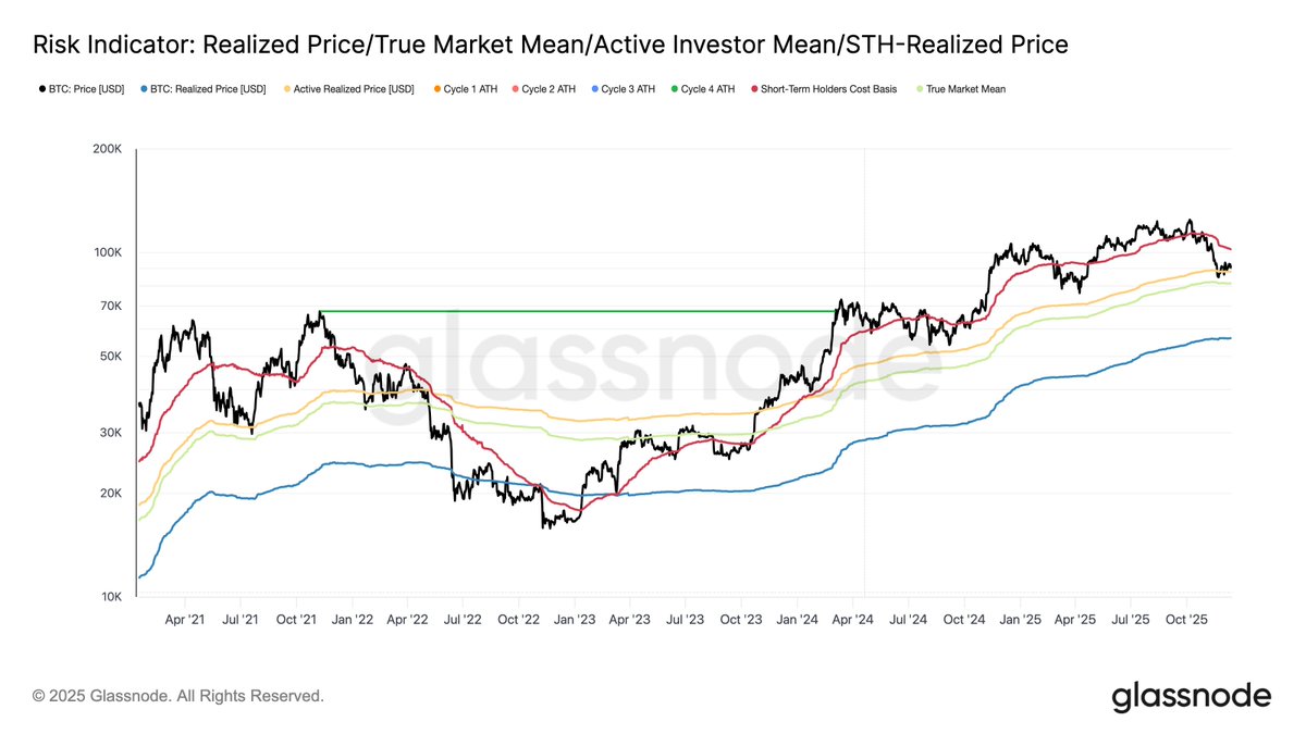 比特币仍被困在一个脆弱的区间内,沉重的头顶供应、不断上升的损失实现和逐渐消退的需求限制了复苏尝试。