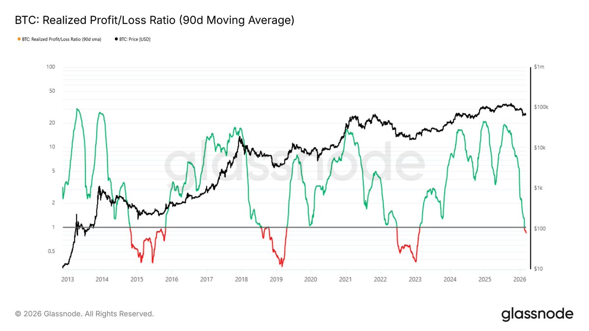 • SOPR(7D EMA)从1.16(Jul '25)降至0.96(现在)
