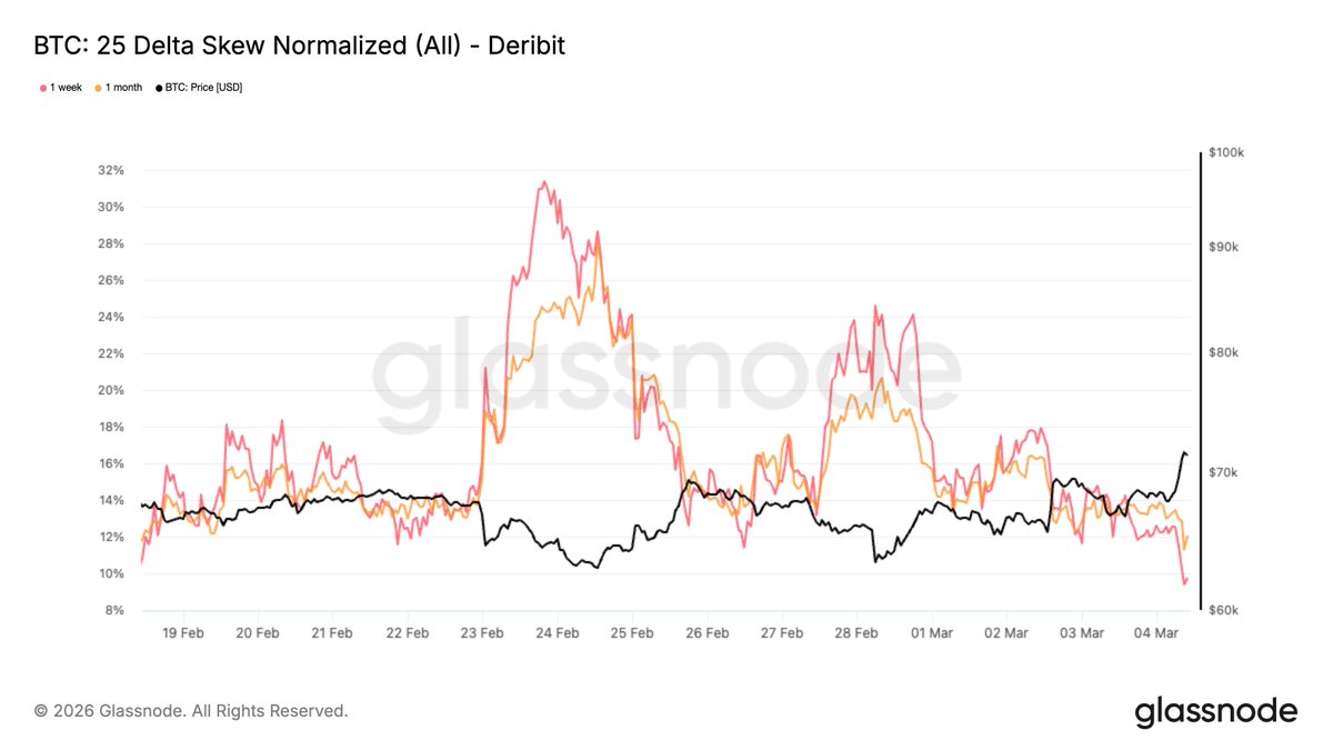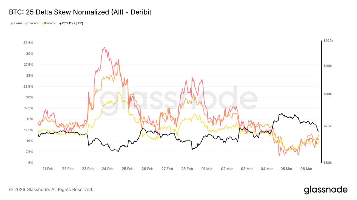 #Bitcoin 突破7万美元,现货需求改善显示市场不确定性。ETF资金流显示初步稳定,而衍生品仍保持谨慎。期权数据表明下行恐惧减弱,上行兴趣在7.5万美元左右。