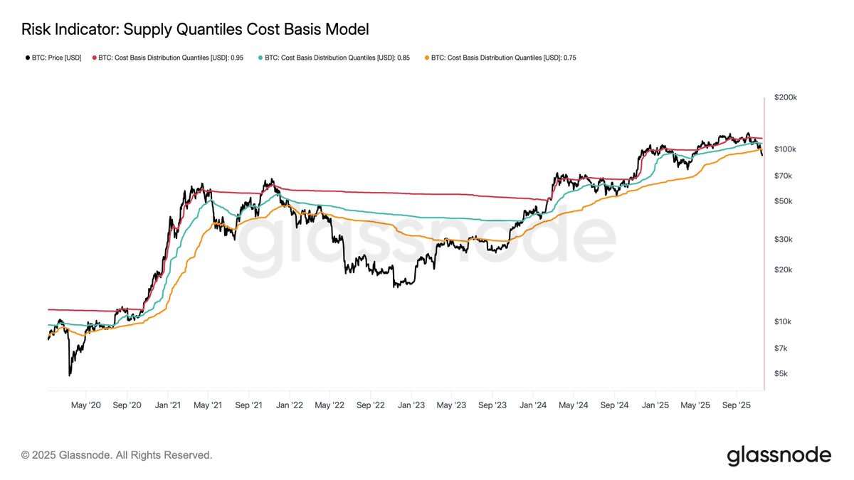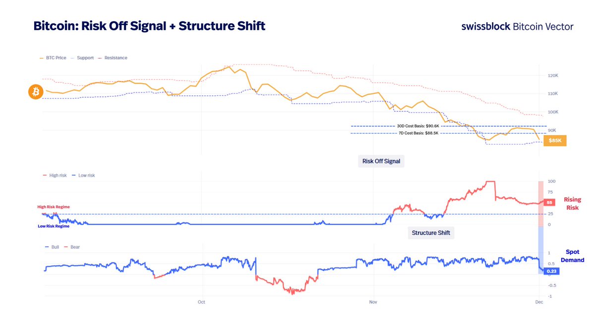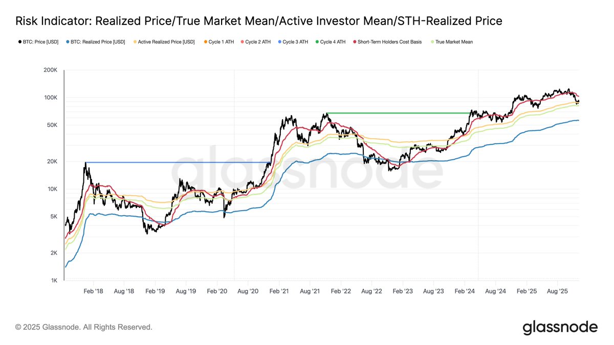 比特币稳定在真实市场均值之上,但市场结构现在与2022年第一季度相似,超过25%的供应处于水下。ETF、现货和期货的需求正在减弱,而期权显示出压缩的波动性和谨慎的仓位。