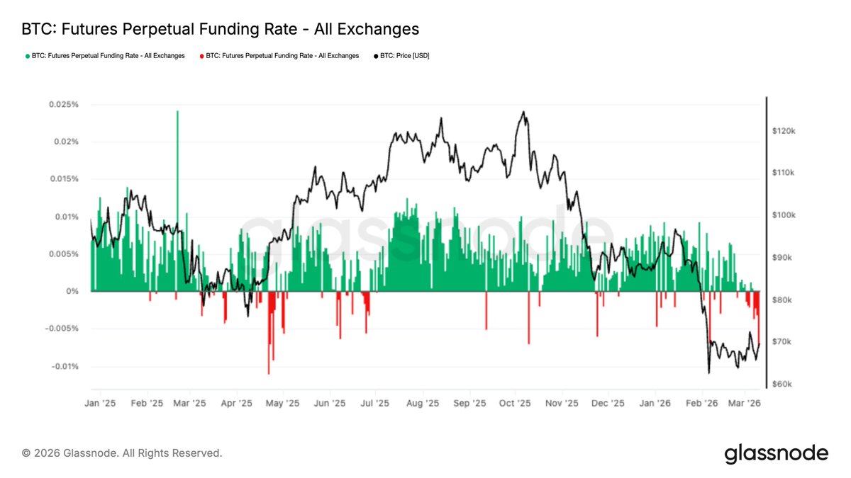随着ETF资金流入回归和现货需求复苏,比特币正显现出初步稳定的迹象。负资金费率表明空头头寸拥挤,而期权波动率正在缓解。