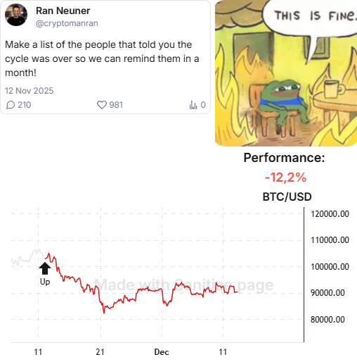 📉 另一方面,以太坊在过去12周内下跌了35%。夏季时高涨的情绪占据主导后,FOMO已足够冷静,因此散户不太可能对价格产生负面影响。