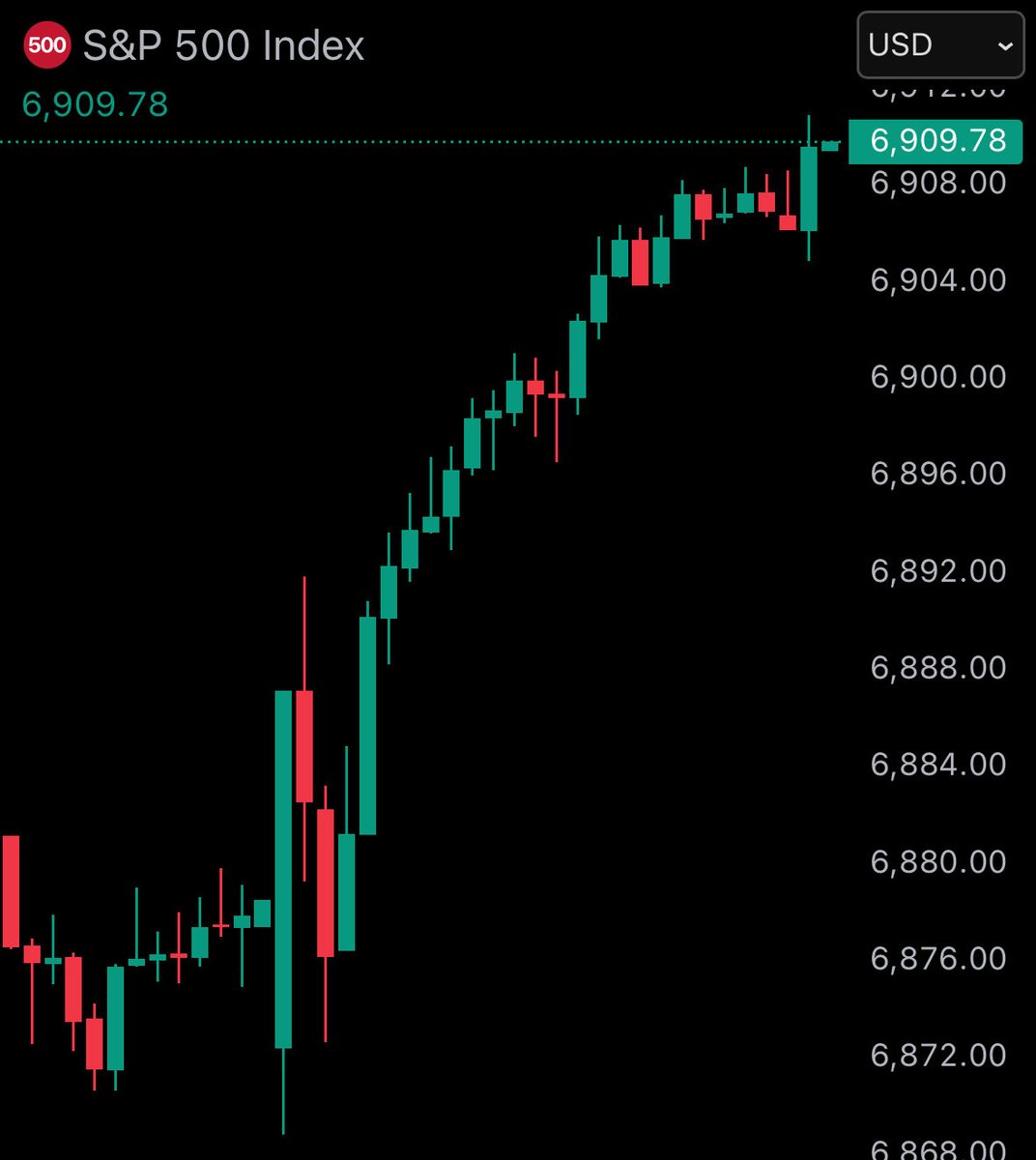 最新消息:🇺🇸 标普500指数首次突破6,909点,创下历史新高。