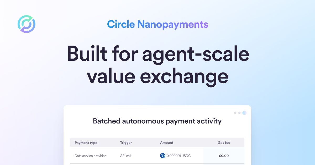 Circle Nanopayments已在测试网上线,支持低至$0.000001的无gas费USDC转账。