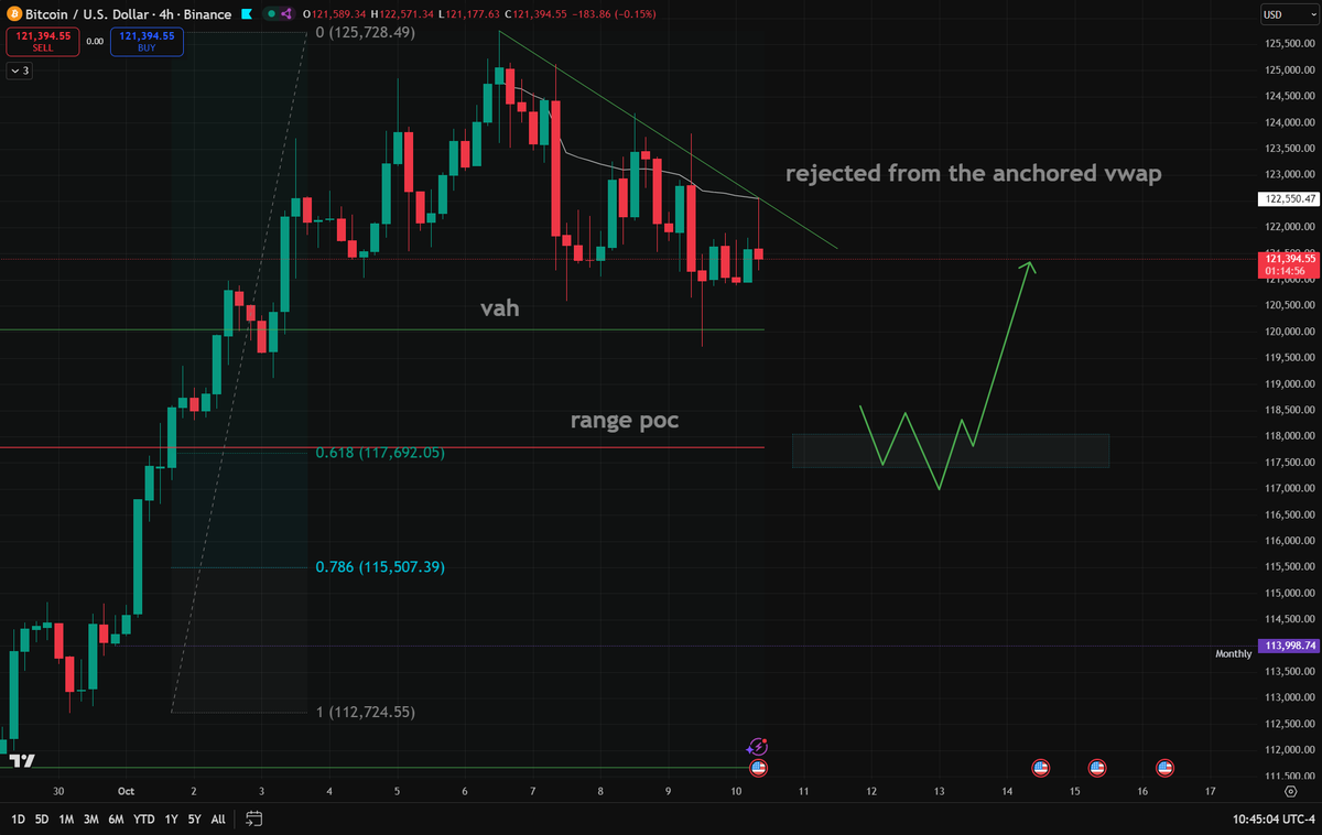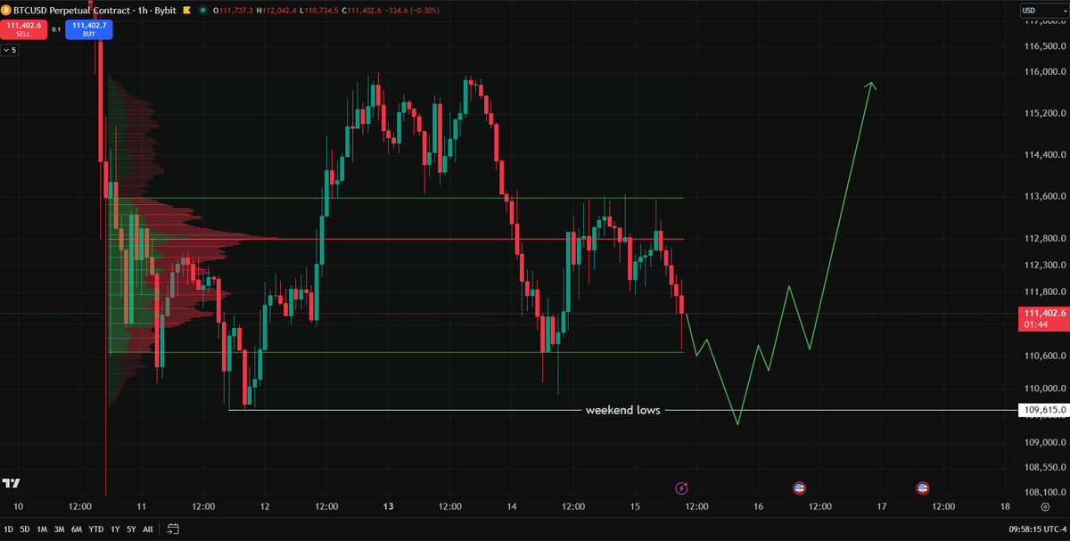 $BTC 正如预期从 VAL 反弹,但最佳设置将首先扫过那些周末低点,清除弱手,然后强势反转回到区间内。