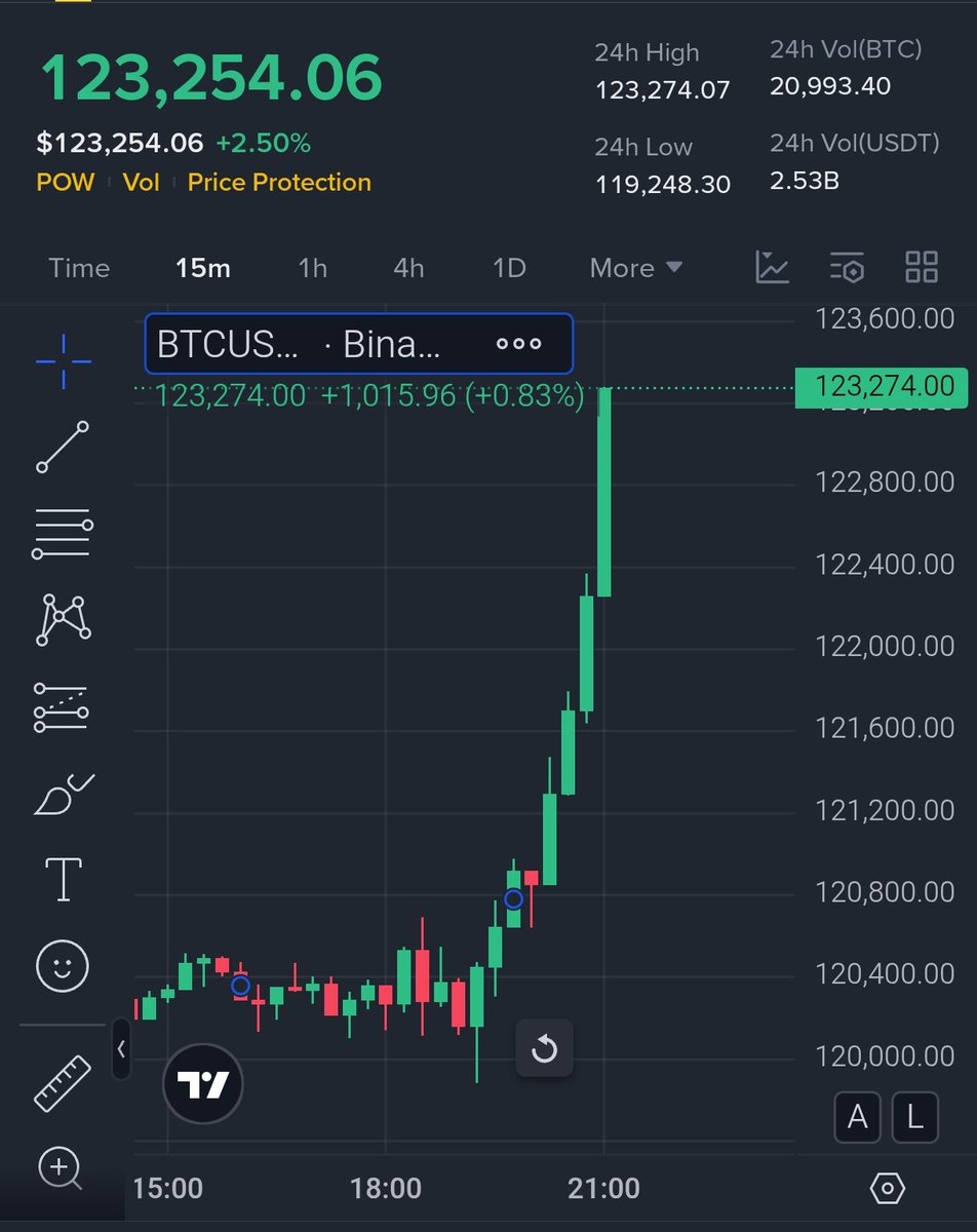 比特币刚刚突破$123,000。历史新高即将到来。🔥
