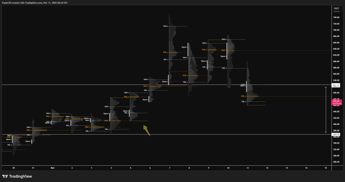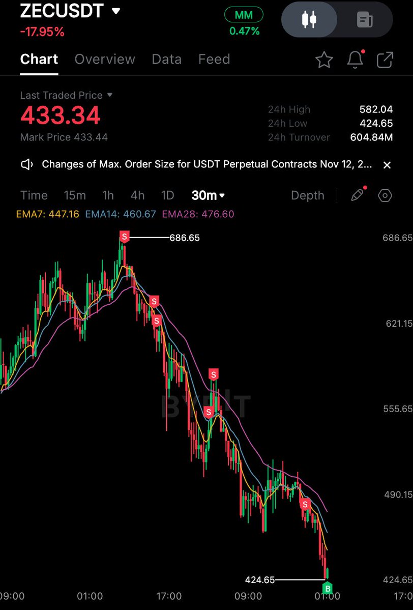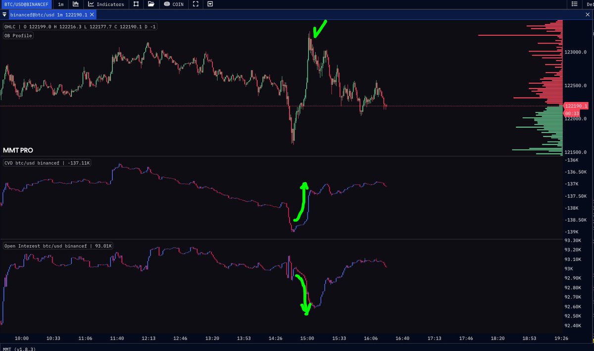 $ZEC做空的例子:他通过订单流和市场概况作为确认,在顶部进行了做空。