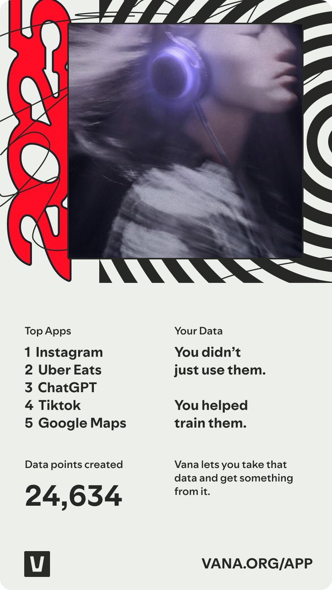 Spotify Wrapped很有趣,因为它将你的收听数据转化为值得分享的时刻。Vana为你的整个数字生活带来了这种洞察力,完全由你掌控。