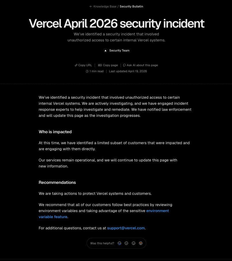 VERCEL 被黑客入侵了