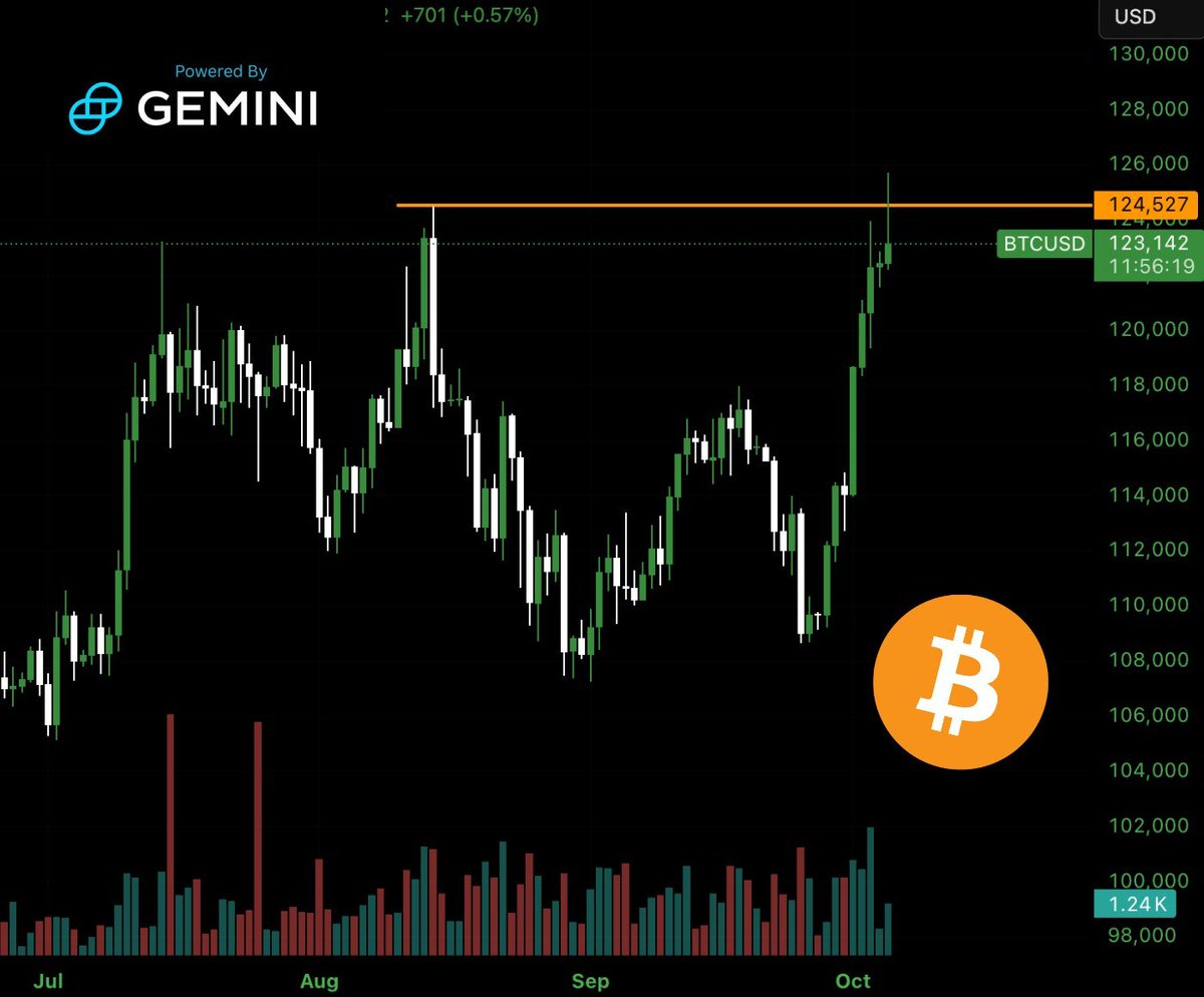 💥突发:比特币创下历史新高,达到$125,000 我们出发了 🚀