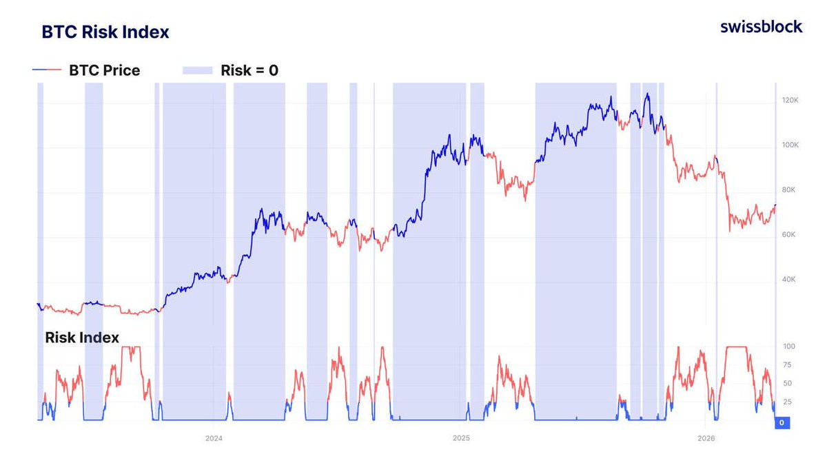 比特币风险指数刚刚触及0。