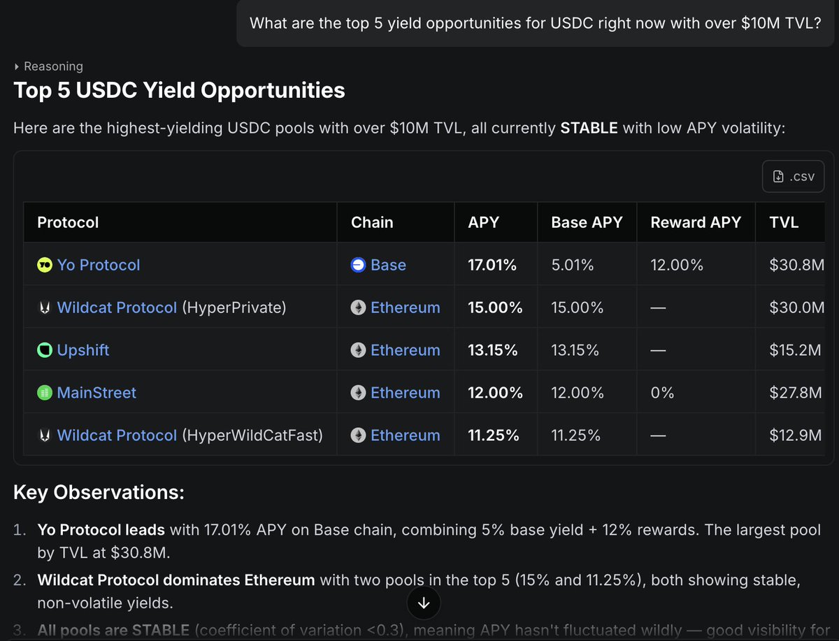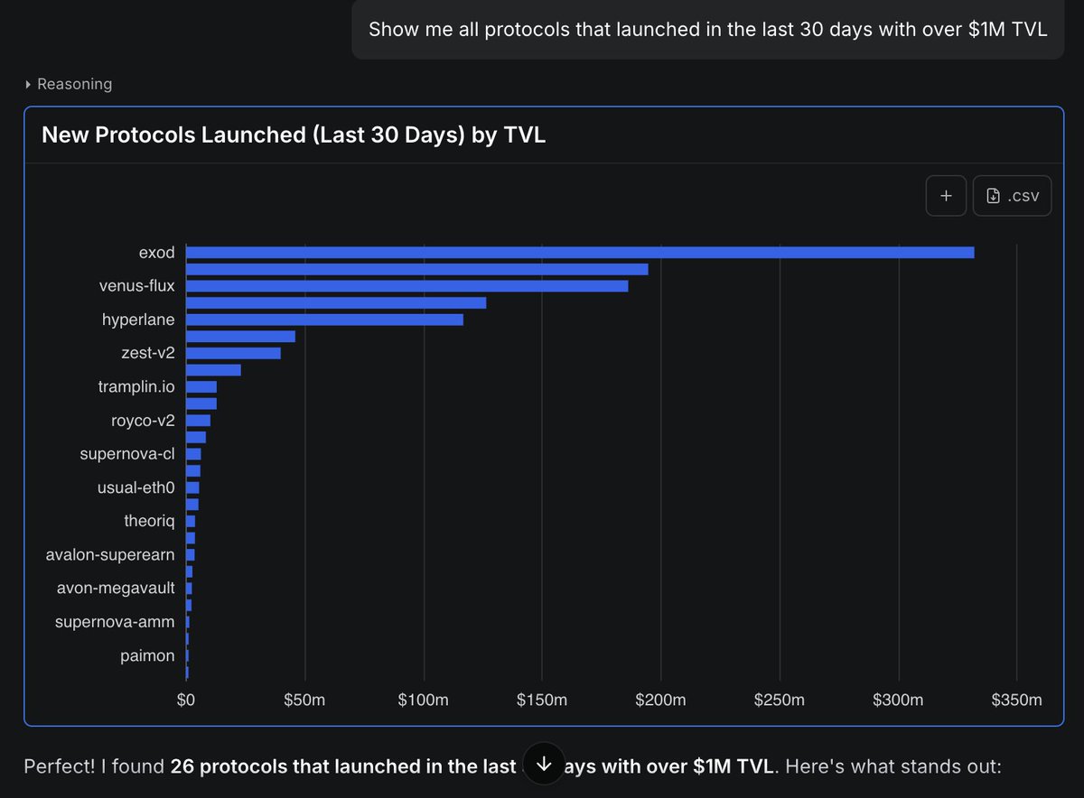 通用LLM会引导你使用DefiLlama API。LlamaAI构建查询并为你返回结果。