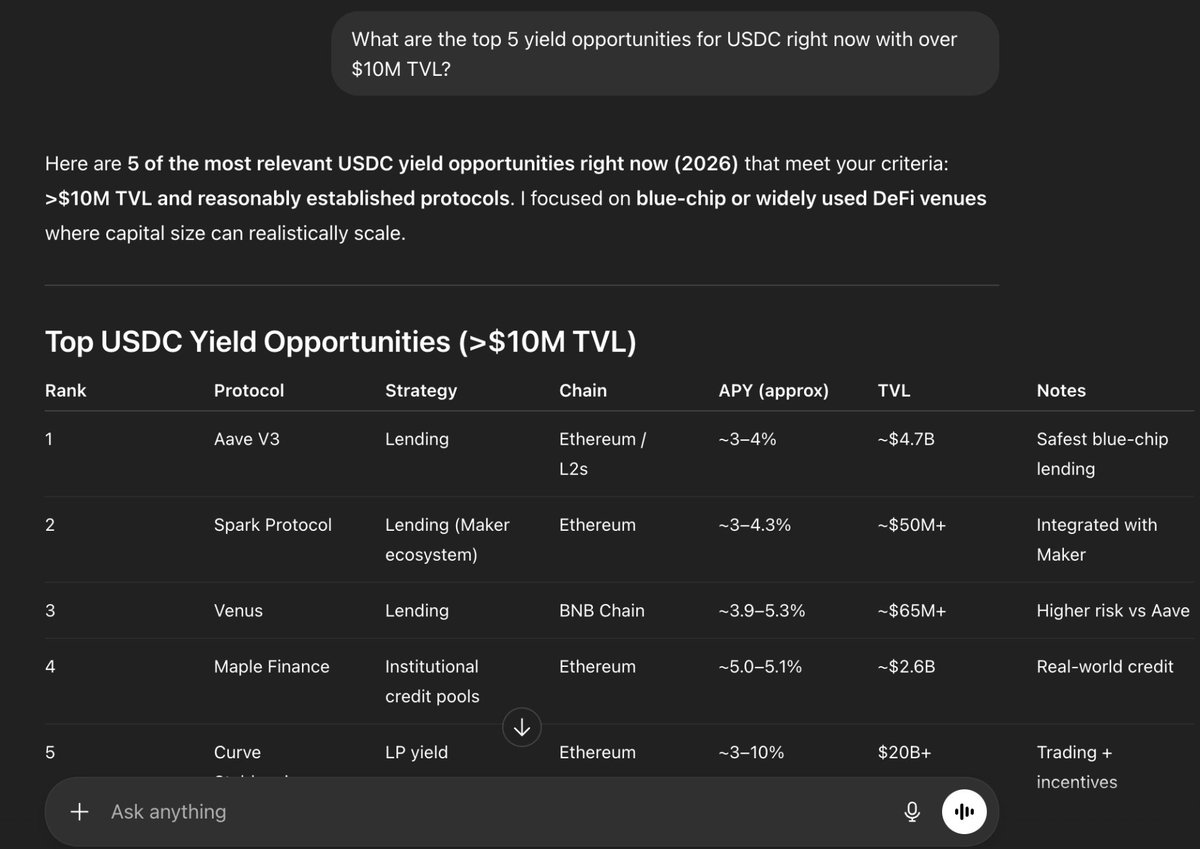 一个原因是它能实现有趣的比较。例如,这里我们让LlamaAI根据估值倍数比较去中心化金融借贷协议和银行。