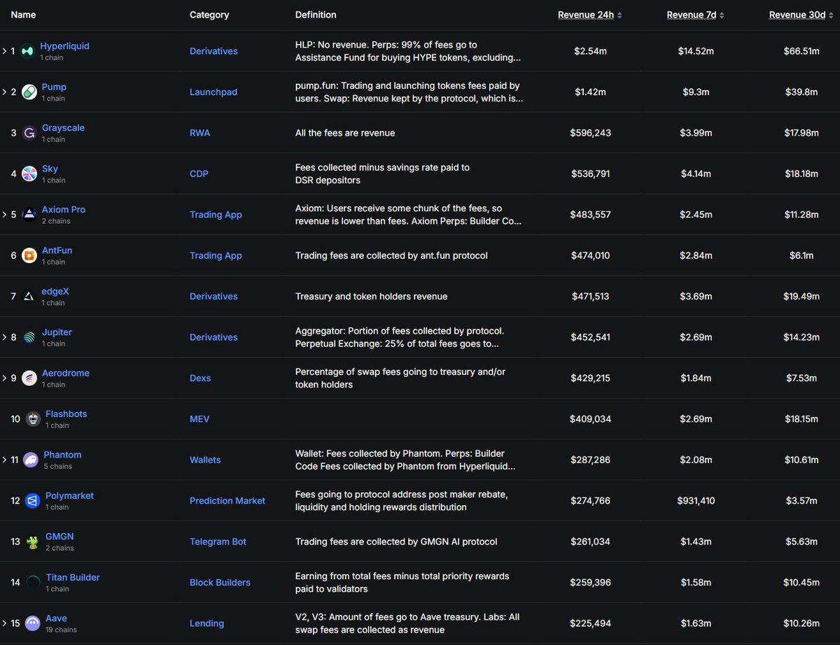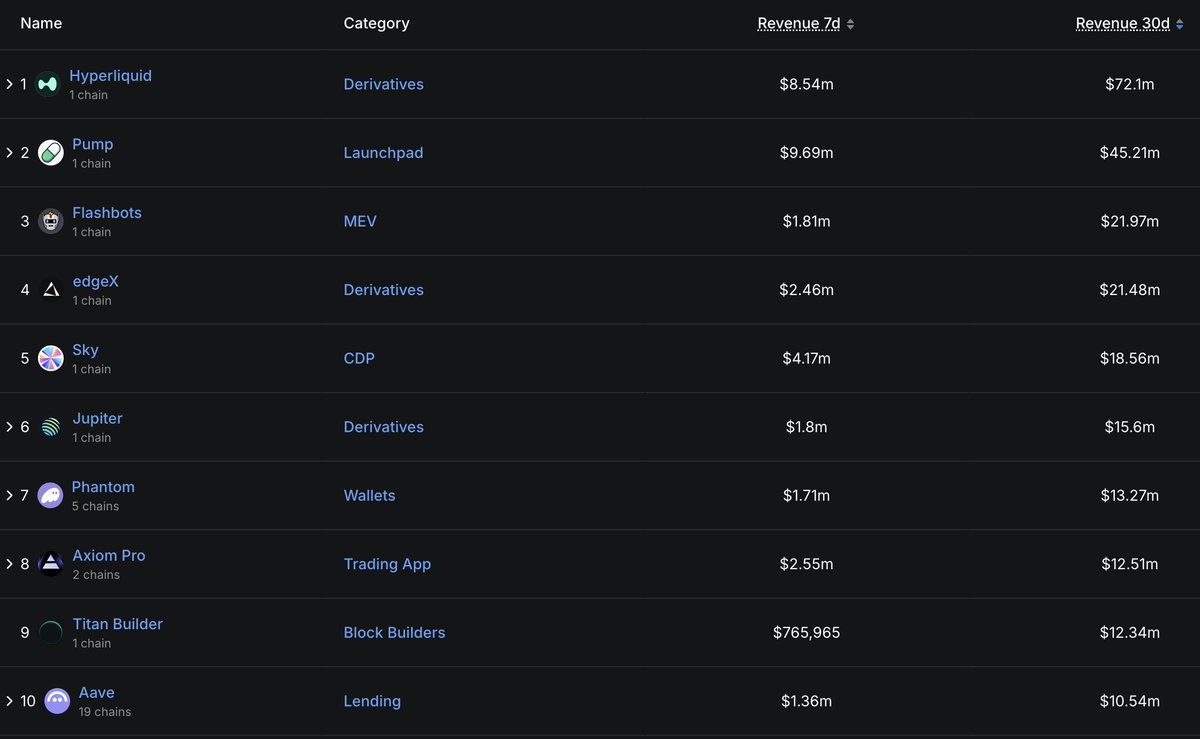 这些是过去30天收入最高的10个协议。
