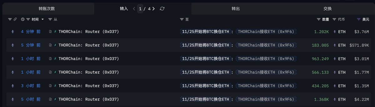 他们从 11/25 以来,18 天时间里一共已经将 1,632 枚 BTC 跨链兑换成了 48,364 枚 ETH ($1.45 亿),兑换的 ETH 成本均价为 $3,011。