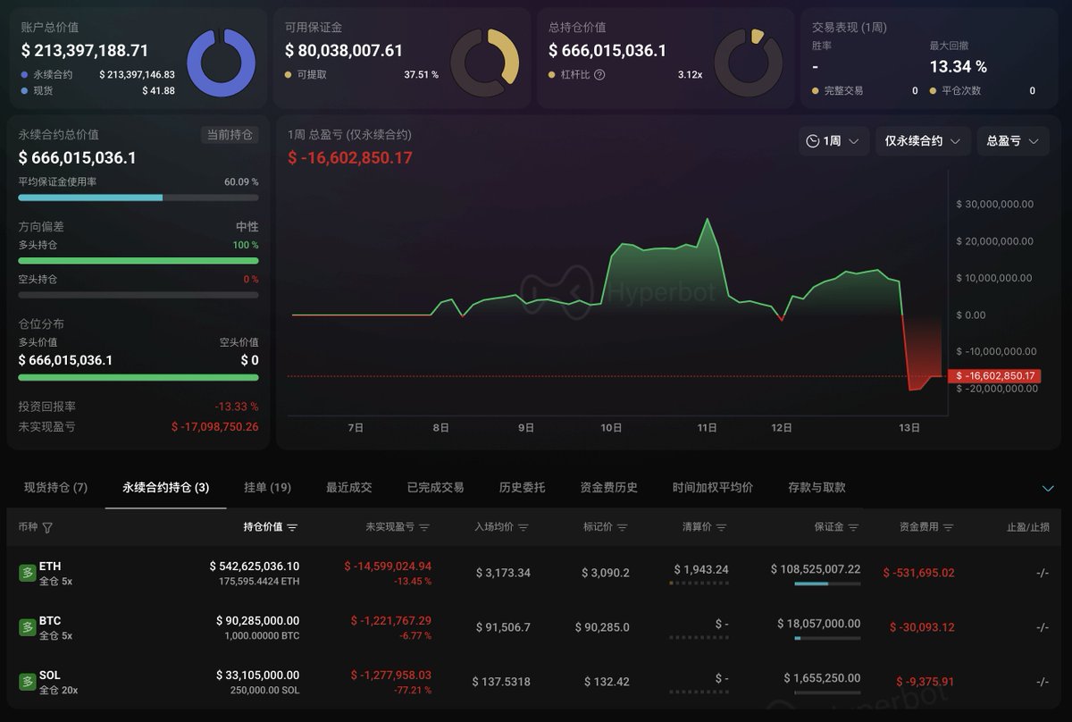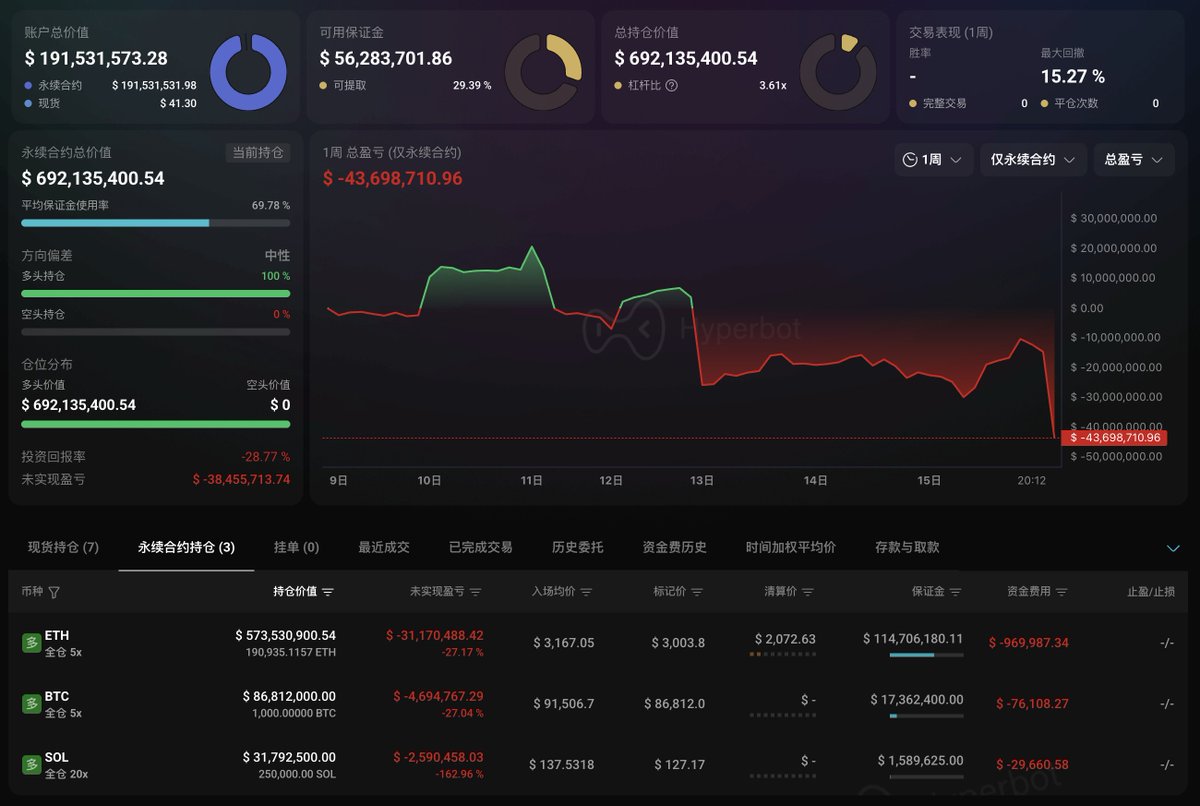 不过就是随着市场继续下跌,他的多单目前浮亏已经来到 $7318 万了。