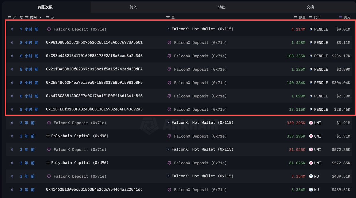 这些 $UNI 已经在陆续转移进 CEX 了:4 天前这 535.5 万枚 UNI 转移到 0xF436 地址后陆续向 CEX 转移,目前已经有 78 万枚 UNI ($756 万) 转进了多家 CEX。