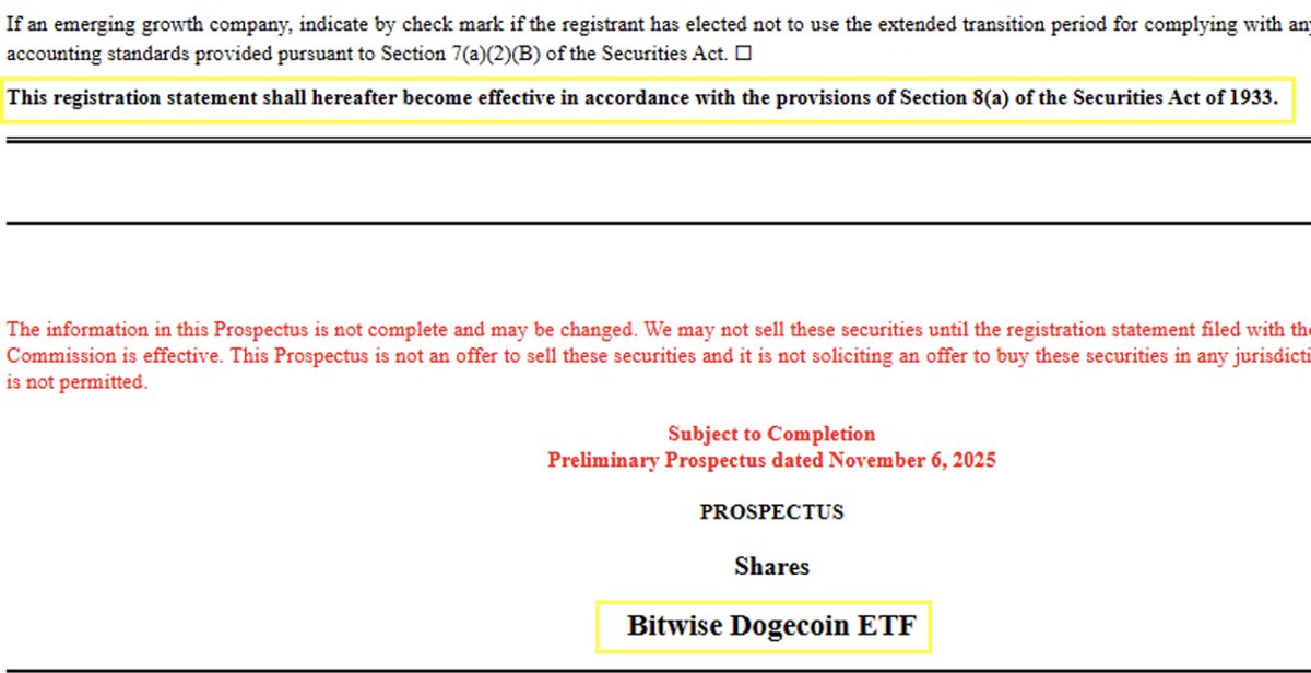 看起来Bitwise正在为其现货Dogecoin ETF采取8(a)行动,基本上意味着除非有干预,否则他们计划在20天内生效。