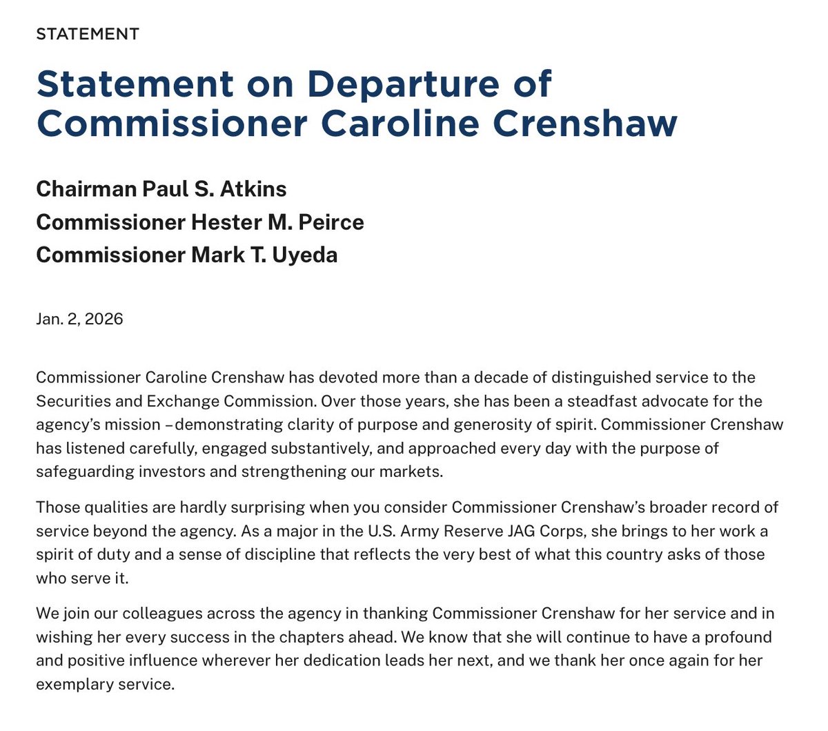 “斯科特主席和参议院银行委员会在与民主党同僚合作推动两党数字资产市场结构立法方面取得了显著进展。从一开始,斯科特主席就明确表示这一努力应是两党合作。他始终耐心并真诚地进行讨论,以制定一项强有力的两党合作成果,为数字资产行业提供明确性,同时使美国成为世界加密货币之都。委员会将继续谈判,并期待在2026年初进行修订。”