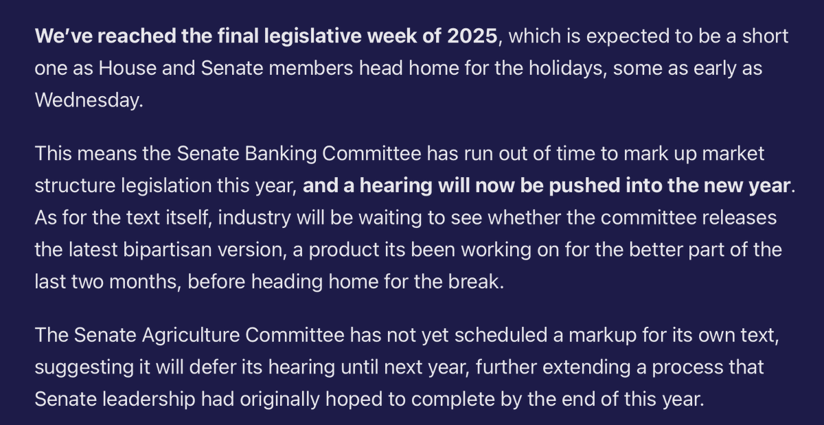 📌参议院将于2026年初对加密货币市场结构进行投票