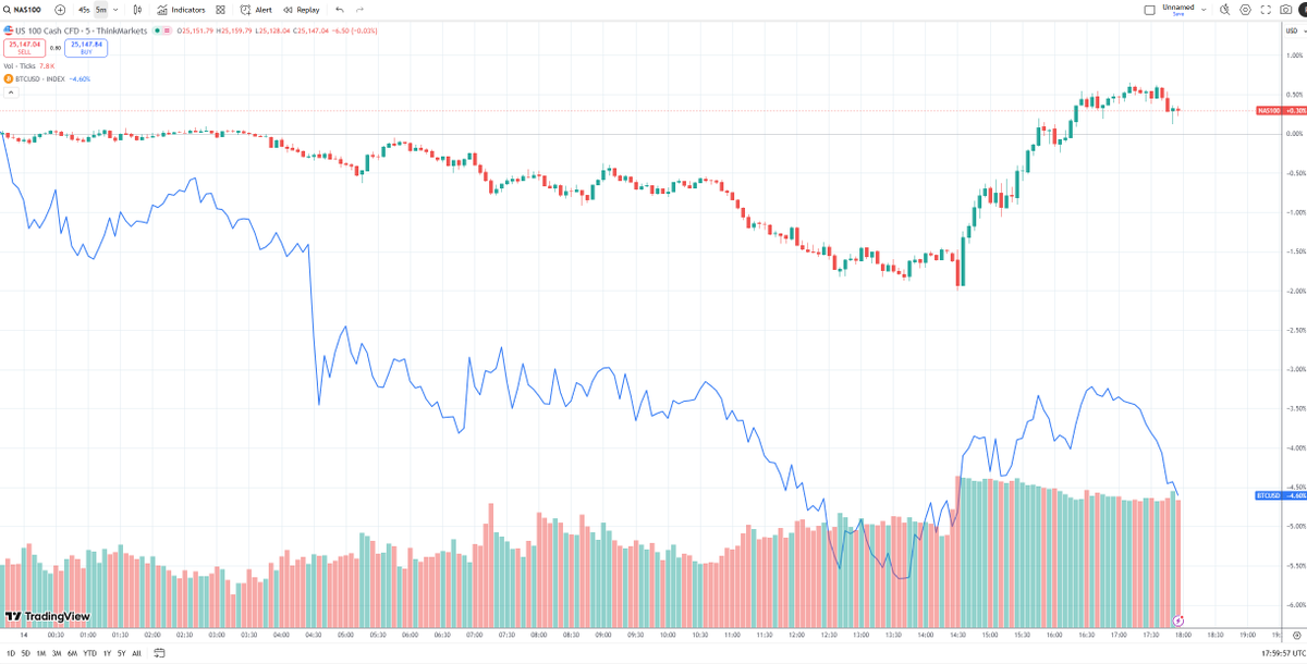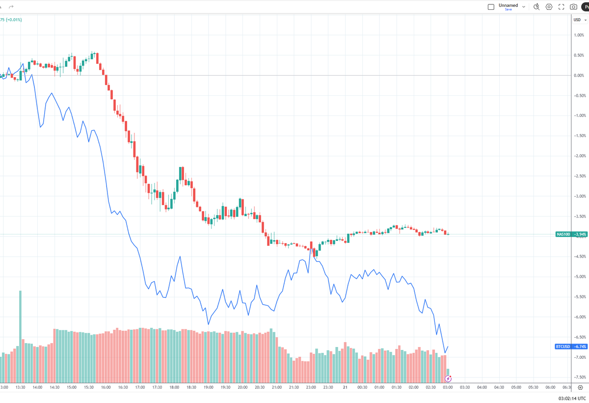 即使在亚洲交易时段,纳斯达克保持稳定的情况下,比特币仍在不断创下新低。有些东西坏了。
