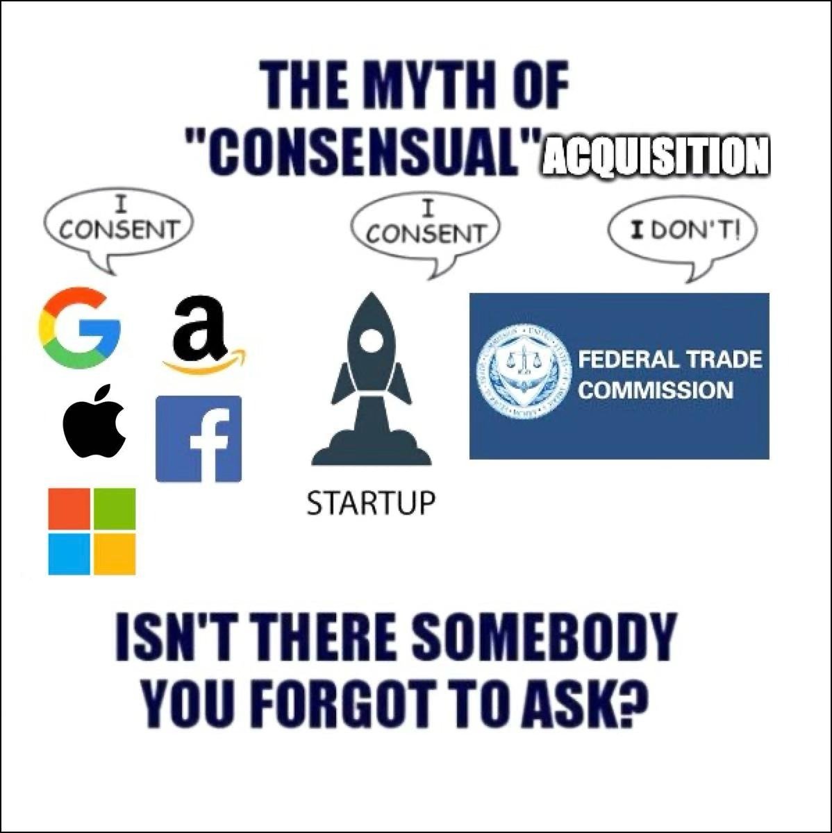 记住,大型科技公司多年来确实进行了干净的并购。那么发生了什么变化?是拜登时代的监管打击。最知名的面孔是联邦贸易委员会的Lina Khan。不过公平地说,这现在是一个国际事务。而且现任政府也在继续推行。因为特朗普2是支持加密货币的,但反对大型科技公司。你知道吗?我明白了。大型科技公司确实支持觉醒文化并审查公民。但大型并购对大公司来说并不是真正的重大胜利。它们更像是投降。它们标志着大型科技公司无法建设,所以不得不购买。而每一笔这样的交易都会资助1000多家初创企业。所以:如果你想颠覆,重新合法化收购。让大公司通过付钱向初创企业投降。让自由市场占上风。自愿收购 > 糟糕的监管。