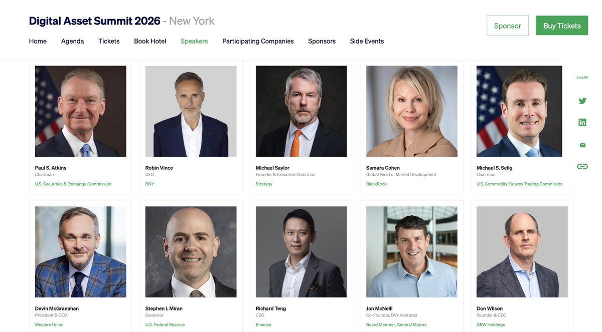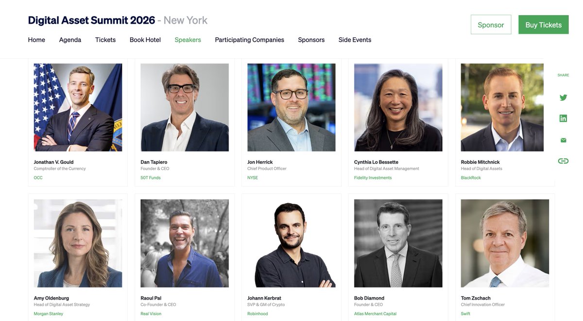 我不认为有比DAS更明确的迹象表明我们正处于机构牛市中。我们刚刚售罄了VIP门票。今天不得不将普通门票价格提高到$300,因为我们即将提前售罄。像BNY Mellon和Western Union这样的大型金融机构的CEO将与SEC和CFTC的主席一起发言。从未见过这样的Blockworks活动。散户熊市,机构牛市。