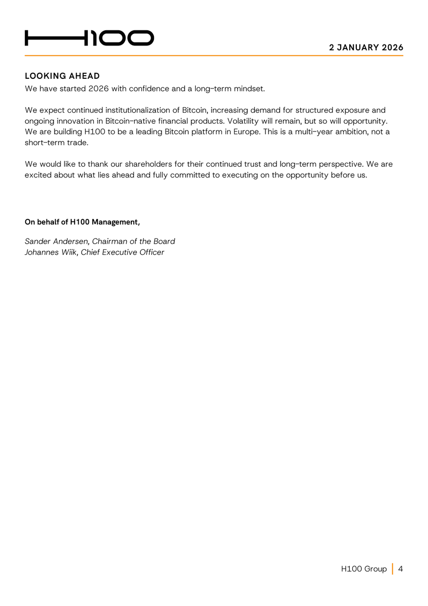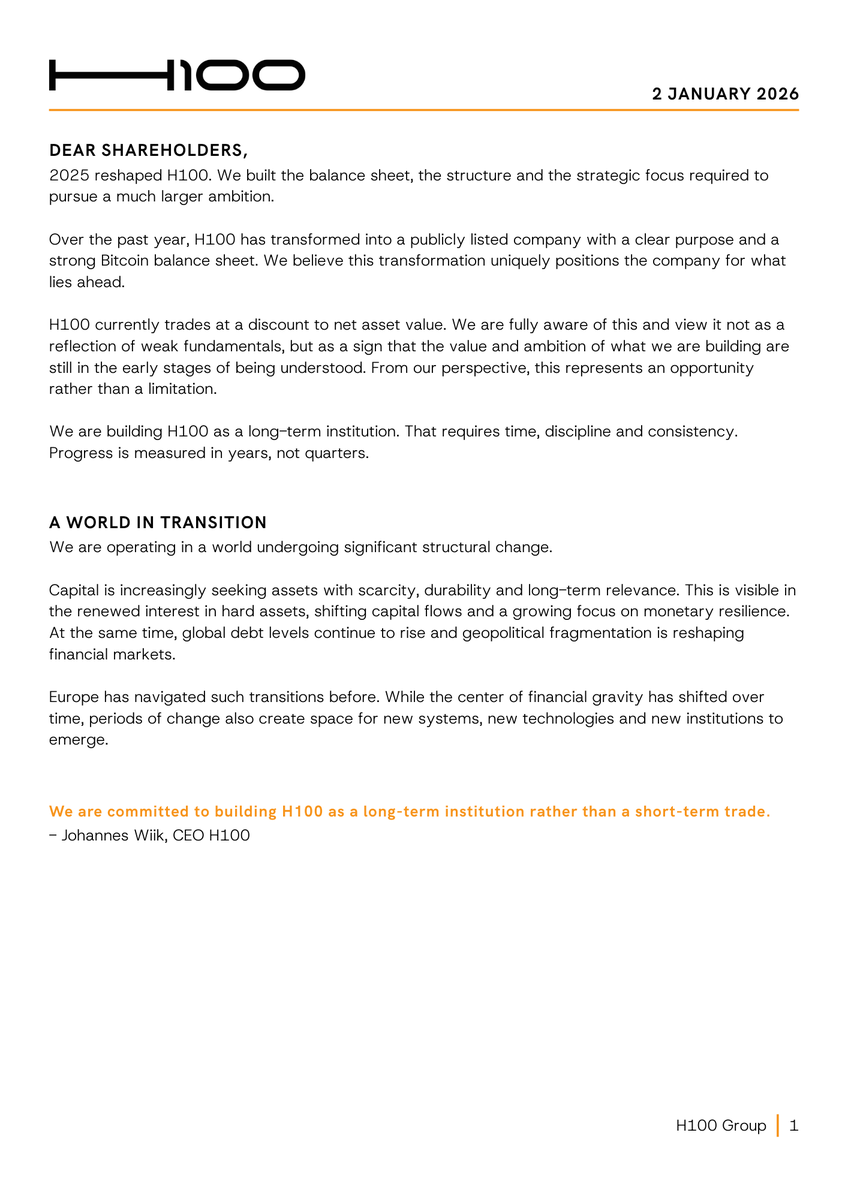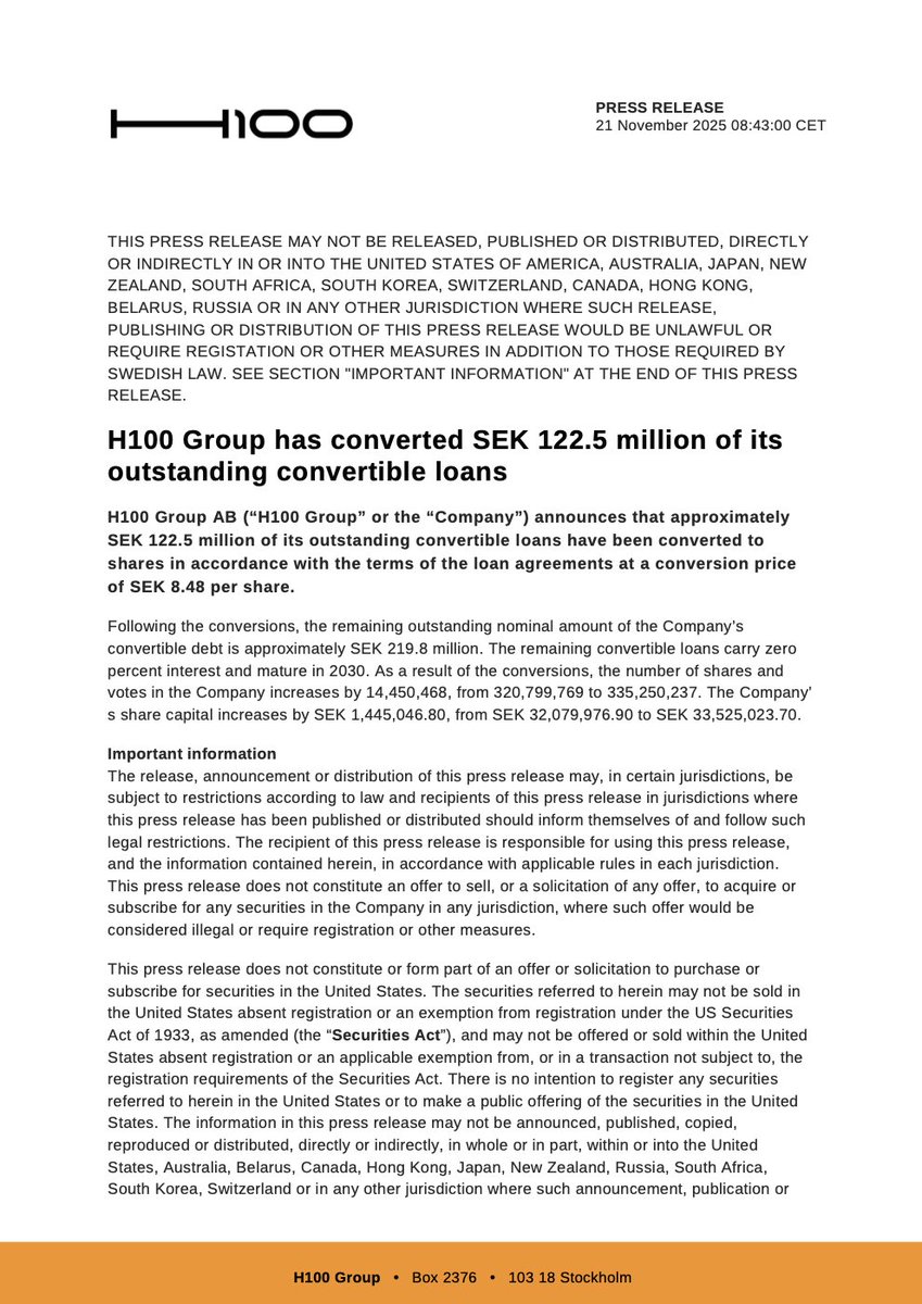 “我们为北欧的根基感到自豪,但我们的视野始终是全球化的。确保 为我们提供了一个坚实的基础,通过我们的普通股和不断壮大的国际社区触及更广泛的受众。” - @Wiik_Johannes, H100 Group AB的首席执行官