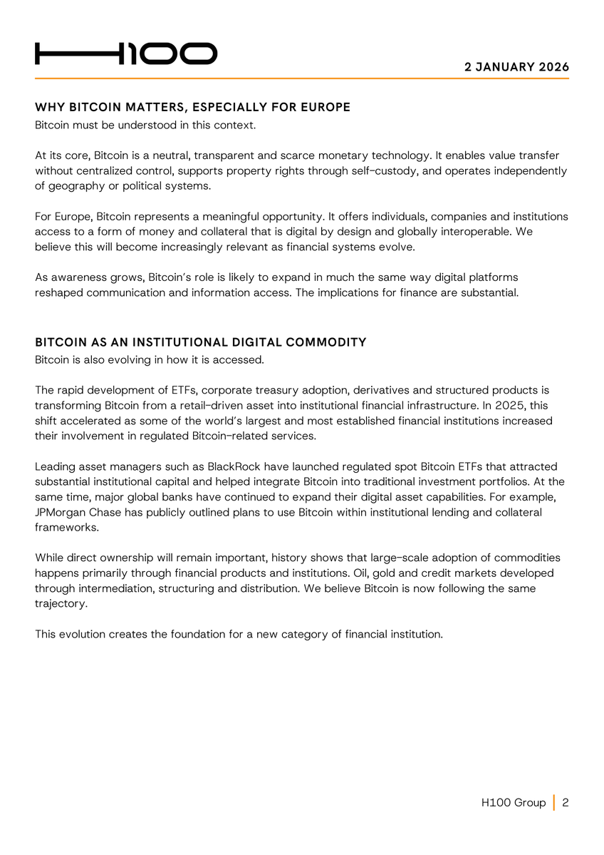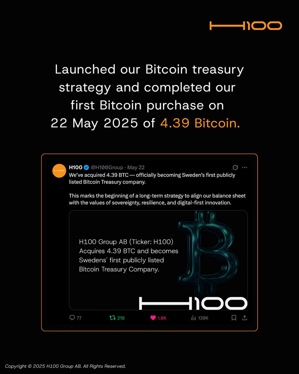 🔸 H100已成为北欧首家领先的比特币国库公司。