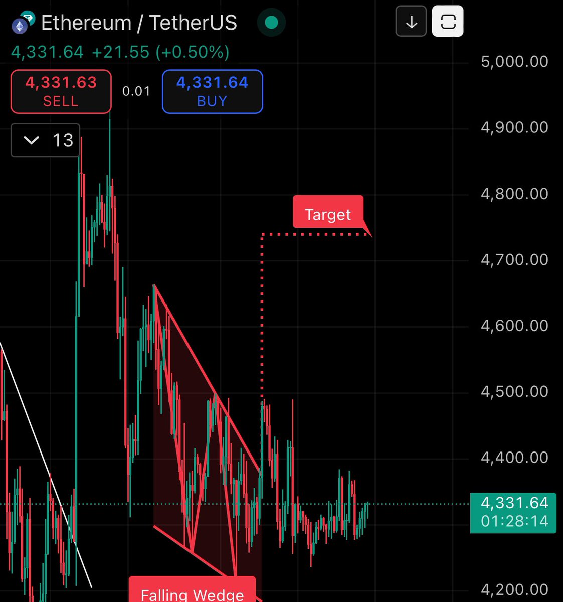 现在在4小时蜡烛图上突破了下降楔形,经过及时的整理,准备迎接下一波上涨。我正在增加我的多头仓位。