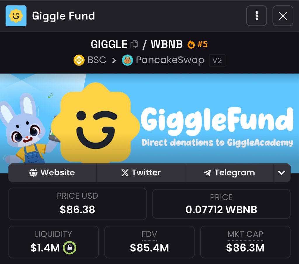 $GIGGLE 在 BNB 链上到月底将达到十亿+。