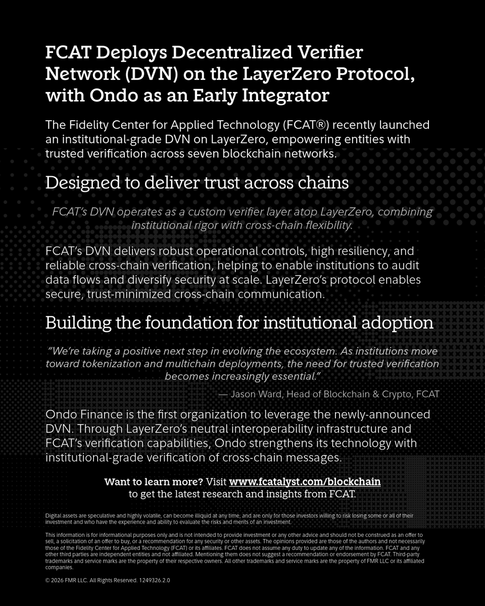 随着行业迈向万物代币化,Fidelity's Center for Applied Technology (FCAT®) 非常适合帮助保护跨链资产流动。