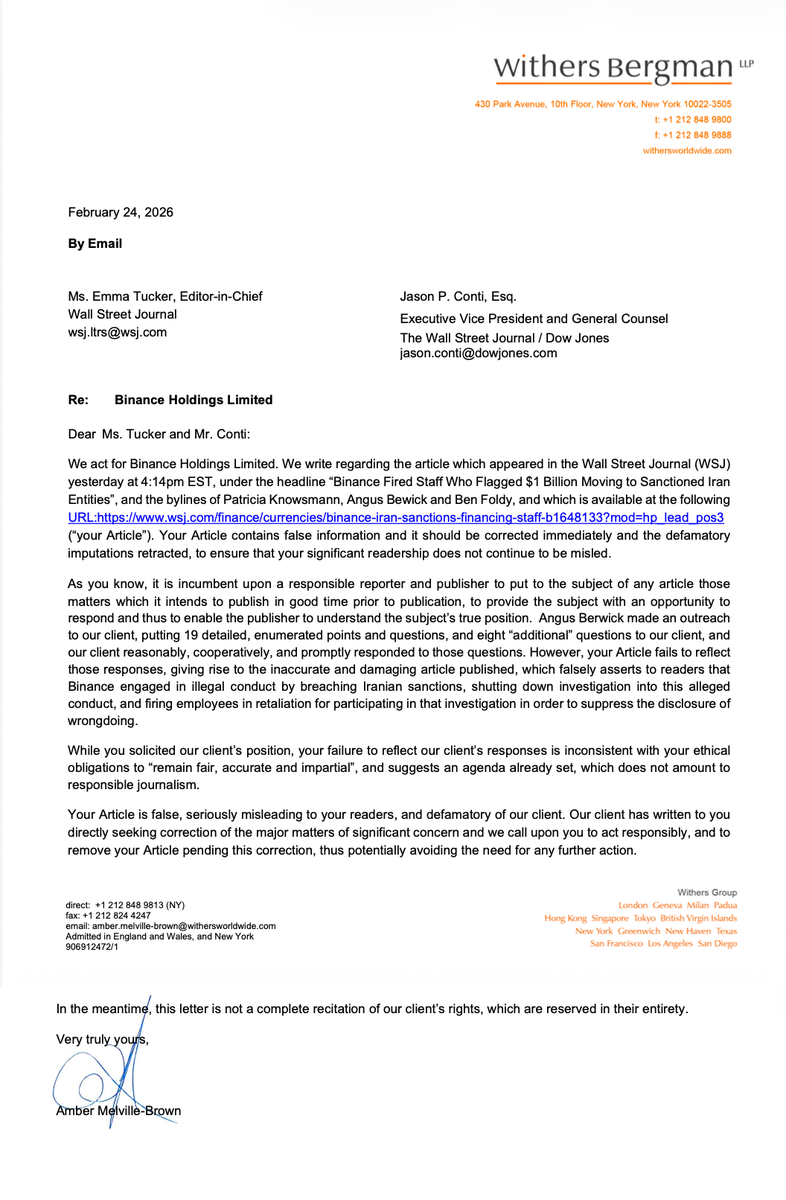 《华尔街日报》发表了诽谤性言论,尽管我们努力澄清事实,但记者未能承认我们对这些指控的任何更正。我们已经发送了附信,要求立即更正并全面撤回这些虚假陈述。
