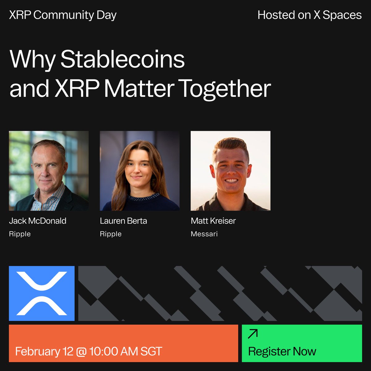 下周请收听XRP社区日,与@_JackMcDonald_、Lauren Berta (@rootveg444) 和来自@MessariCrypto的@KreiserMatt一起了解更多信息: