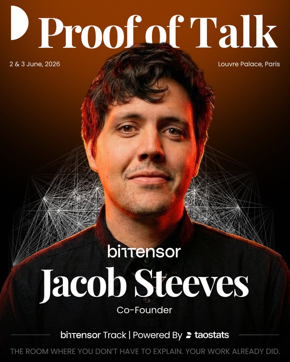 接受过数学家和计算机科学家培训的Jacob Steeves @const_reborn在Google Brain开始了他的职业生涯,站在全球最大科技公司之一的AI前沿。对比特币着迷的他,设想了一个像谷歌但去中心化的企业:不是通过等级制度,而是通过开放的激励措施来协调。近十年来,Jacob一直围绕这个理念构建Bittensor:一个机器智能可以在开放环境中涌现、竞争和演进的网络。AI与加密经济激励的统一。今年夏天,他将重返卢浮宫。6月2-3日。Proof of Talk上的Bittensor Track。